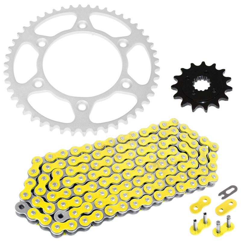 Drive Chain with Front and Rear Sprockets. Compatible with following Honda models: XR600R 1991-2000. Order Includes: Drive Chain with Master Link and Rivet Link (Tensile Strength 6000 pounds), Front Sprocket 14 Teeth / Material: Steel, Rear Sprocket 48 Teeth / Material: C49 High Carbon Steel. The chain comes in standard 120 Links. Features: Chain in Yellow color.Other fine products