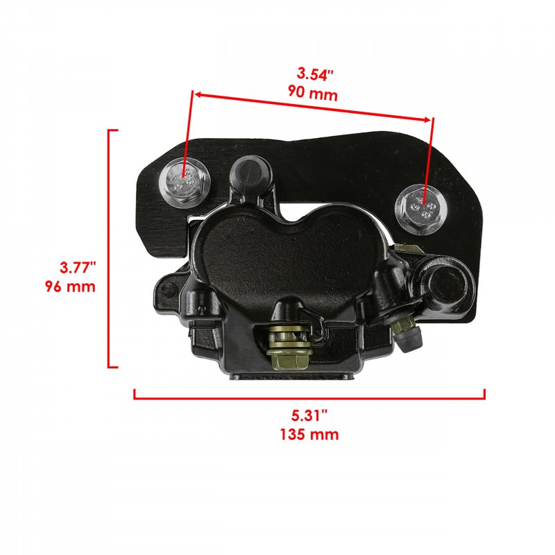 Order Includes: 1x Front Right Brake Caliper, 1x Front Left Brake Caliper, 1x Rear Brake Caliper. Compatible with Can-Am models: Outlander 1000R 2018-2022. Front Right Brake Caliper Dimensions: Length: 5.27" / 134.0 mm, Height: 3.74" / 95.0 mm, Mounting Hole Distance: 3.5" / 89.0 mm. Front Left Brake Caliper Dimensions: Length:5.27" / 134.0 mm, Height: 3.74" / 95.0 mm, Mounting Hole Distance: 3.5" / 89.0 mm. Rear Brake Caliper Dimensions: Width: 3.46" / 88.0 mm, Length:5.31" / 135.0 mm, Height: 3.77" / 96.0 mm, Mounting Hole Distance: 3.54" / 90.0 mm.Other fine products