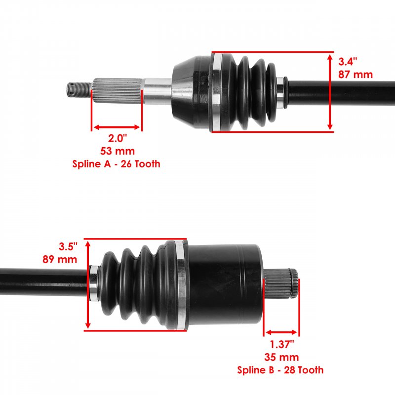 Order Includes: 1x Axle. Compatible with Polaris models: Ranger 500 2017-2018 / Ranger 570 2017-2018. Dimensions: Spline A: 26 Teeth , Spline B: 28 Teeth , Overall Length: 27 Inches/Note: It will not fit on Full Size models.. We strongly suggest comparing the posted picture to the unit(s) that needs to be replaced..Other fine products
