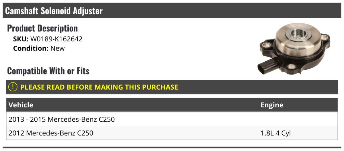 - Camshaft Solenoid Adjuster For 2012-2015 Mercedes-benz C250 1 8l 4-cylinder