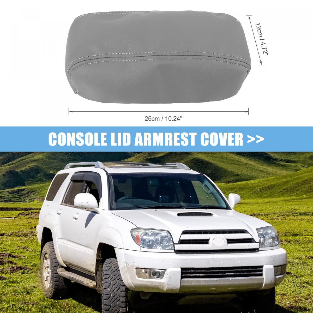 Fitment: for Toyota 4Runner 1996 1997 1998 1999 2000 2001 2002. Microfiber Leather Material: The appearance of microfiber leather is good. The car armrest cover is thick, the color is bright, and it is very durable.. Waterproof and Easy to Clean: You don't have to worry about getting dirty. If the surface of the microfiber leather is dirty, it can be easily cleaned with water.. Full Protection: Wide enough to cover the entire top of your center console lid to acoid finger nails, pet claws or keys scratches.. Installation: Remove a console cover and tear off the original leather(don't remove the sponge), use adhesive tape on the inside edges of the lid. You can start to stick an item from the rear intermediate line. Stick all the edges of the center console cover..Other fine products