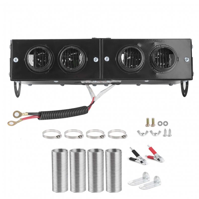 Powerful Function: With dual switches, 4 air outlets, and 4 fans, can effectively remove fog, to effectively meet your demands.. Adjustable Design; The power is adjustable and can be adjusted according to your needs, bringing you more convenience.. Wide Application: Has a wide range of applicability. It can defrost the glass during travel and camping, and provide a comfortable environment.. Simple Installation: Can be installed on the bottom of the seat, beside the feet or anywhere on the car.. Premium Material: Made of highquality iron material, is hard durable, and anti-rust, also has long service life..Other fine products
