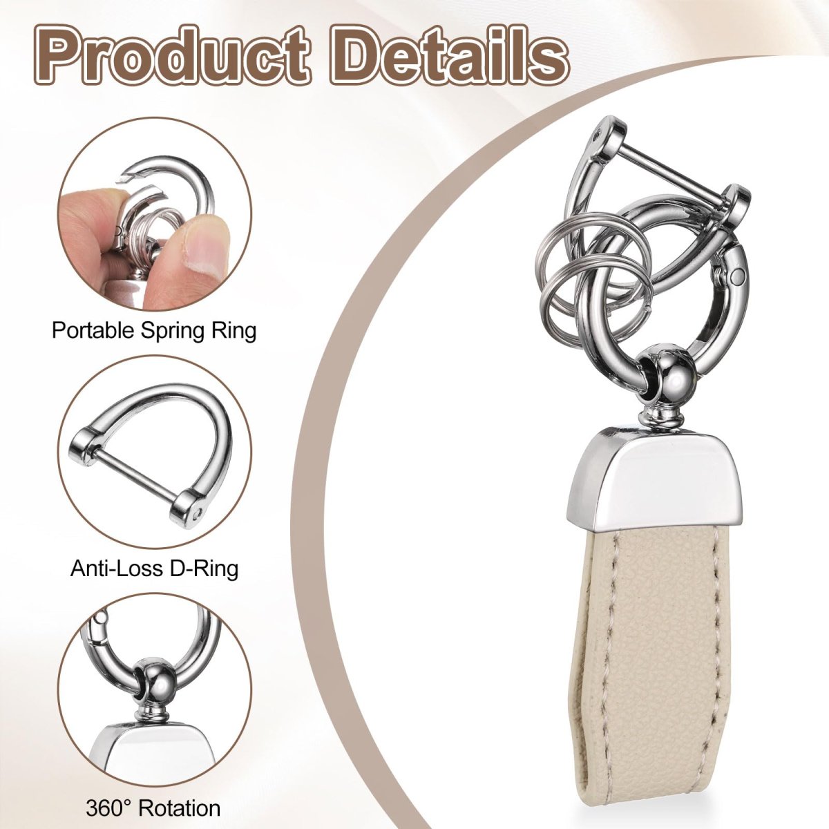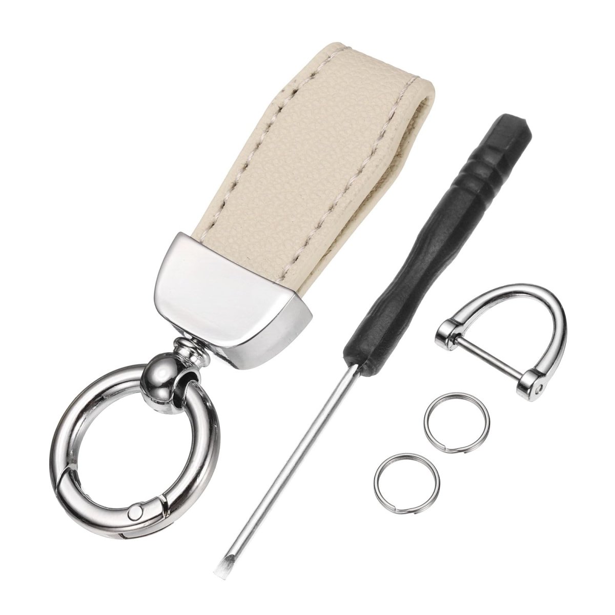 • Car Key Chain Zinc Alloy Leatherchain Anti-lost D-ring Key Fob 360 Degree Rotatable Decorative With Screwdriver For Men And