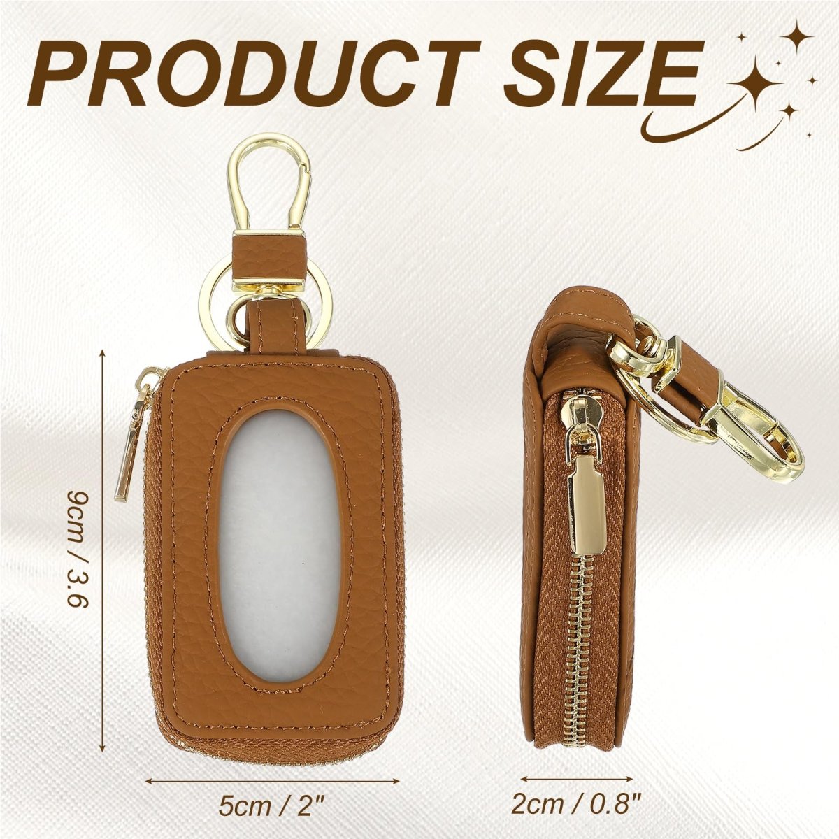 Package Content: 1x Universal Car Key Holder; Color: Yellow; Size: 9x2x5 cm / 3.6x0.8x2 Inches (LxWxH). Material- This car smart key fob holder crafted from genuine leather. Features metal buckles and impeccable stitching for luxury protection and comfortable grip. Natural leather develops unique patina over time while maintaining scratch-resistant coating and elasticity to prevent deformation.. Function- This car key fob case provides 360-degree protection against scratches, dust, and accidental drops. Transparent window design enables direct operation of car keys without removal. Universal compatibility fits most car remote control keys with metal hook for easy attachment to belts or bags.. Easy to Use- This leather keychain pouch is lightweight and portable design with zipper closure for secure storage. 360-degree rotation hook enables versatile carrying options. Transparent window permits direct car door unlock/lock operation without key removal. Simple snap-hook design for pocket or belt carrying.. Wide Application- Universal fit for most car keys across brands. Suitable for daily commuting, travel, and outdoor activities. Suitable for both smart remote fobs and traditional car keys. Perfect for both men and women as a practical accessory..Other fine products
