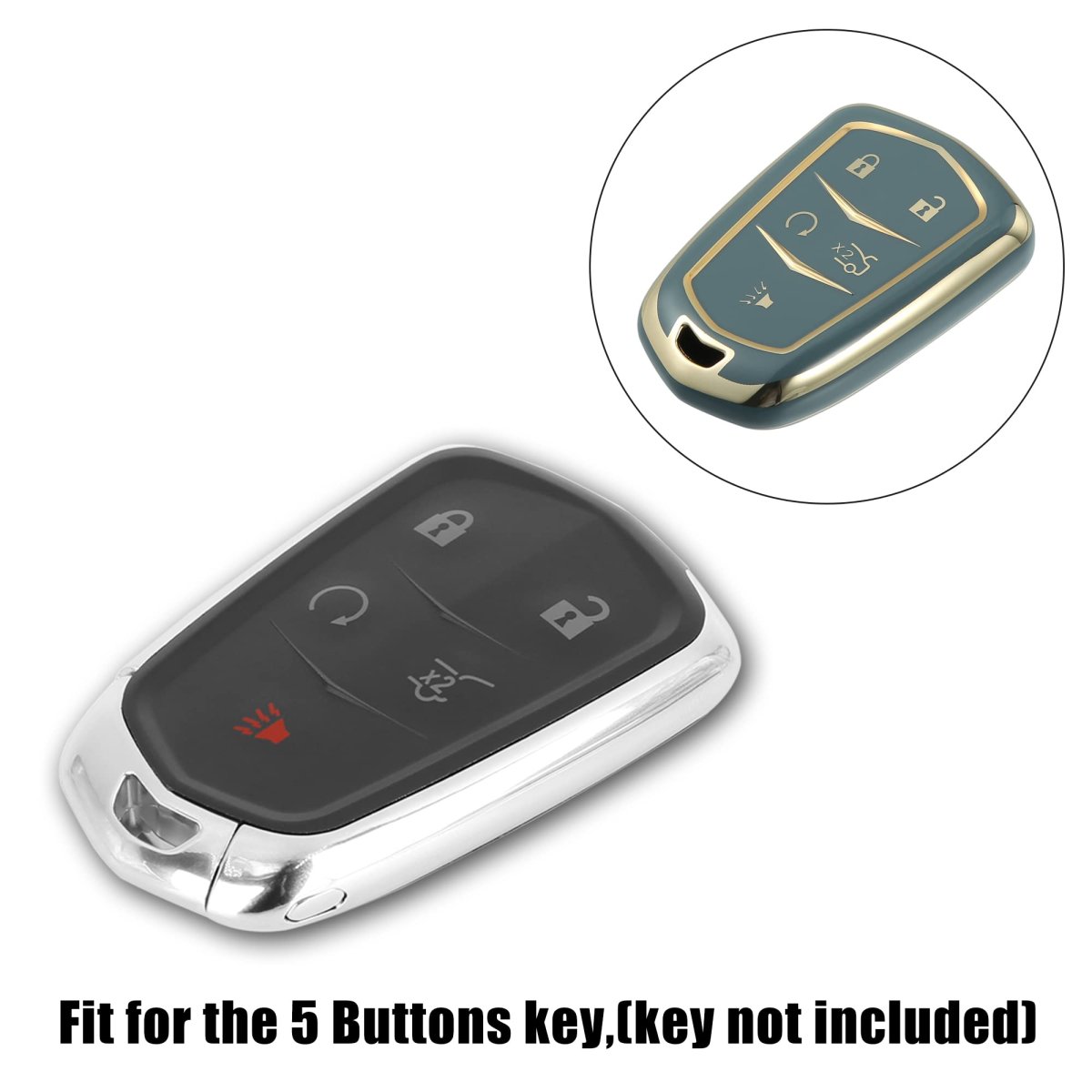 - Car Key Fob Cover 5 Button Remote Case Tpu Full Protector Gray For Cadillac Xt5 2017-2020 Xts Escalade Ats Cts