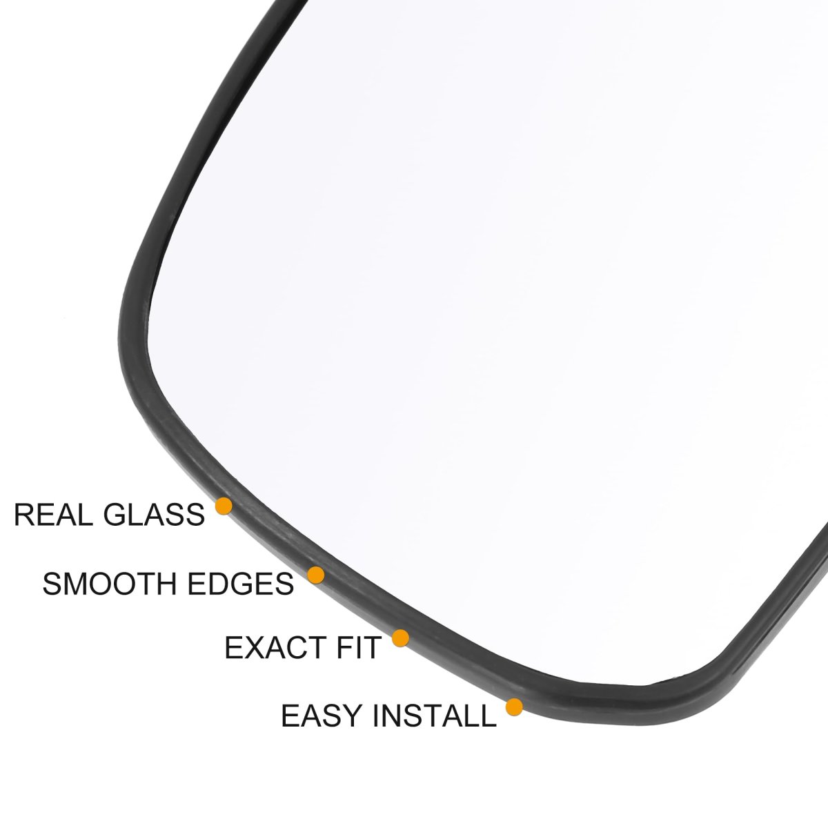 Fitment: replacement of Mirror Glass for Nissan Tiida 2007-2012. Features: Heated mirror for quicker defrost, without auto dimming, with backing plate, left side, power.. Easy Installation: Easy to install for replacing the damaged mirror.. Provide you a clear view in the rain or fog days by this mirror glass with heated function mirror.. Good Replacement: Good choice for your broken or fuzzy mirror..Other fine products