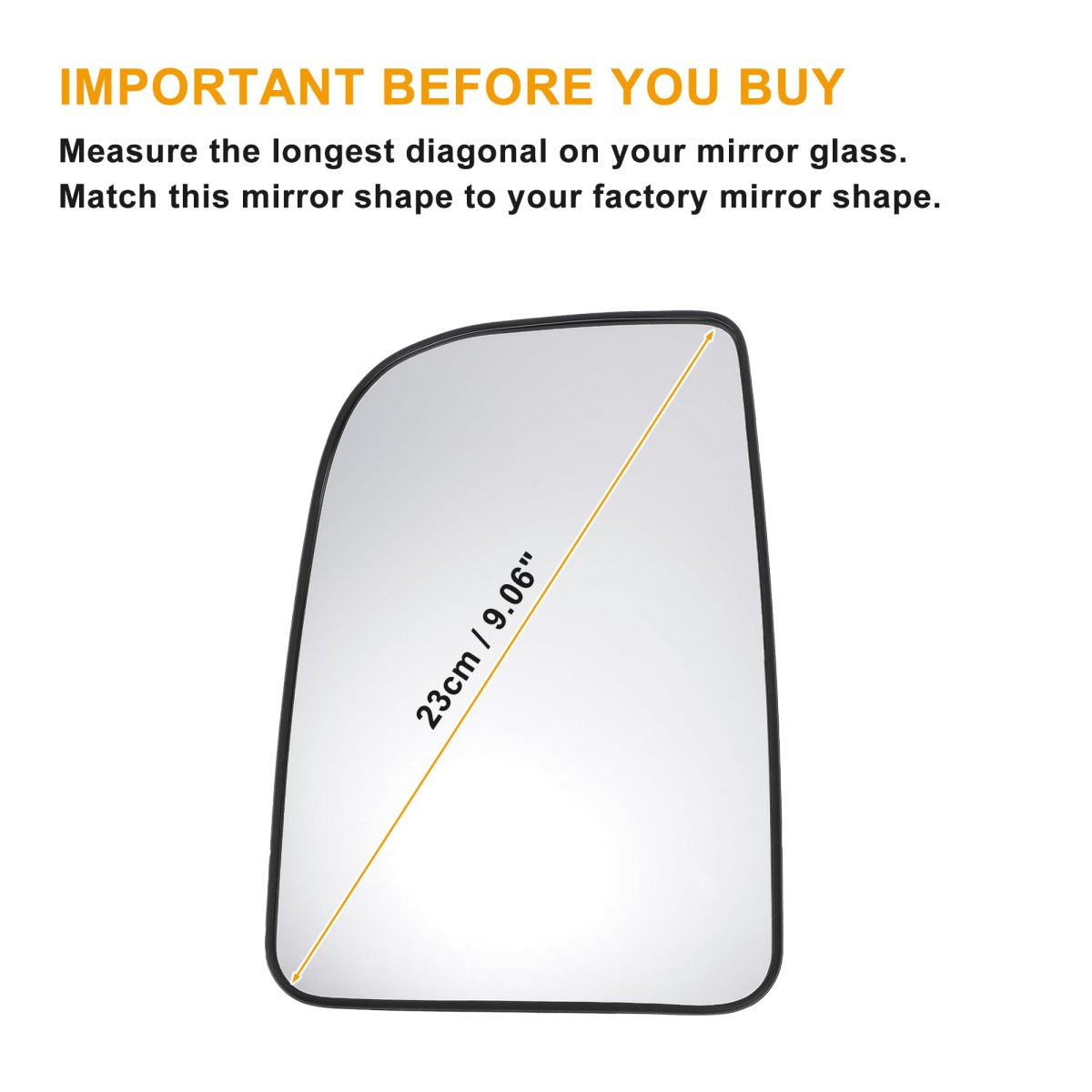 [Fitment] This side mirror fit for Mercedes Sprinter 2018-2023. [Function] The Left Driver Side Upper Part mirror glass with backing plate has not heating function, auto-dimming and Blind Spot Detection Function.. [Good Material] Made of real glass and ABS material, firm and not deformed, waterproof, rust resistant and the glass will not haze.. [Ease of Installation] New mirorr glass can be installed within few minutes. Identical mounting point with factory mirror, fits the existing electrical wiring perfectly. Wiring harness must be unplugged from existing backing plate and plugged into the new backing plate before installation..Other fine products