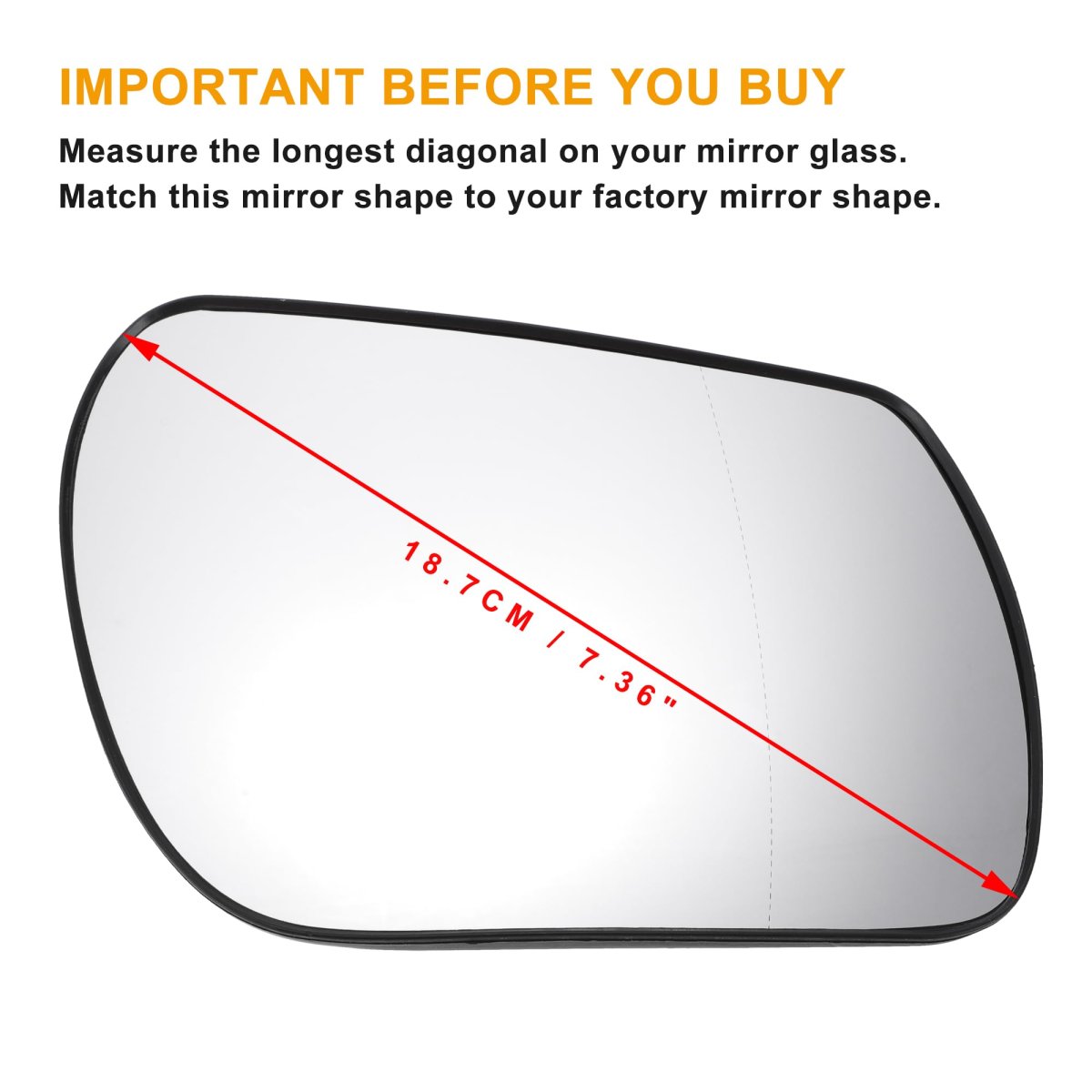 [Fitment] This side mirror fit for MAZDA 3 2003-2008.. [Function] The Right Passenger Side mirror glass with backing plate has heating function, will not haze, which provide a clear vision to ensure driving safety, Especially suitable for rainy and snowy weather. Note: Without Auto-Dimming, without Blind Spot Detection Function.. [Good Material] Made of real glass and ABS material, firm and not deformed, waterproof, rust resistant and the glass will not haze.. [Ease of Installation] New mirorr glass can be installed within few minutes. Identical mounting point with factory mirror, fits the existing electrical wiring perfectly. Wiring harness must be unplugged from existing backing plate and plugged into the new backing plate before installation..