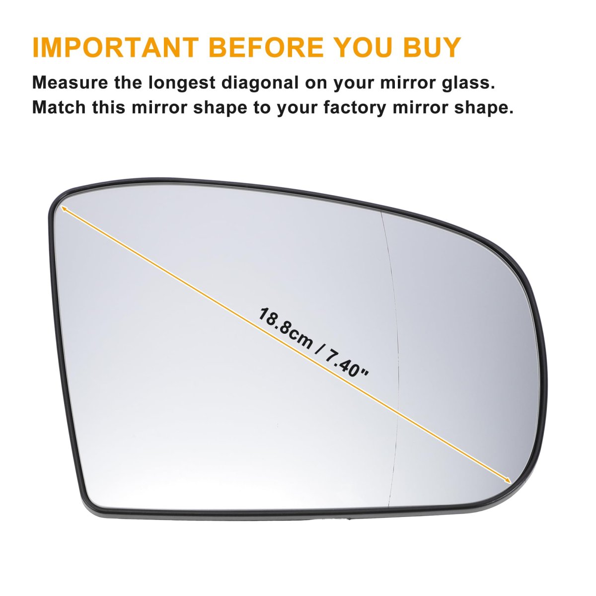 [Fitment] This side mirror fit for Mercedes GL-CLASS X164 2006-2008, for Mercedes GLK-CLASS X204 2008-2010, for Mercedes M-CLASS W163 2001-2005. [Function] The Right Passenger Side mirror glass with backing plate has heating function, will not haze, which provide a clear vision to ensure driving safety, Especially suitable for rainy and snowy weather. Note: Without Auto-Dimming, without Blind Spot Detection Function.. [Good Material] Made of real glass and ABS material, firm and not deformed, waterproof, rust resistant and the glass will not haze.. [Ease of Installation] New mirorr glass can be installed within few minutes. Identical mounting point with factory mirror, fits the existing electrical wiring perfectly. Wiring harness must be unplugged from existing backing plate and plugged into the new backing plate before installation..Other fine products