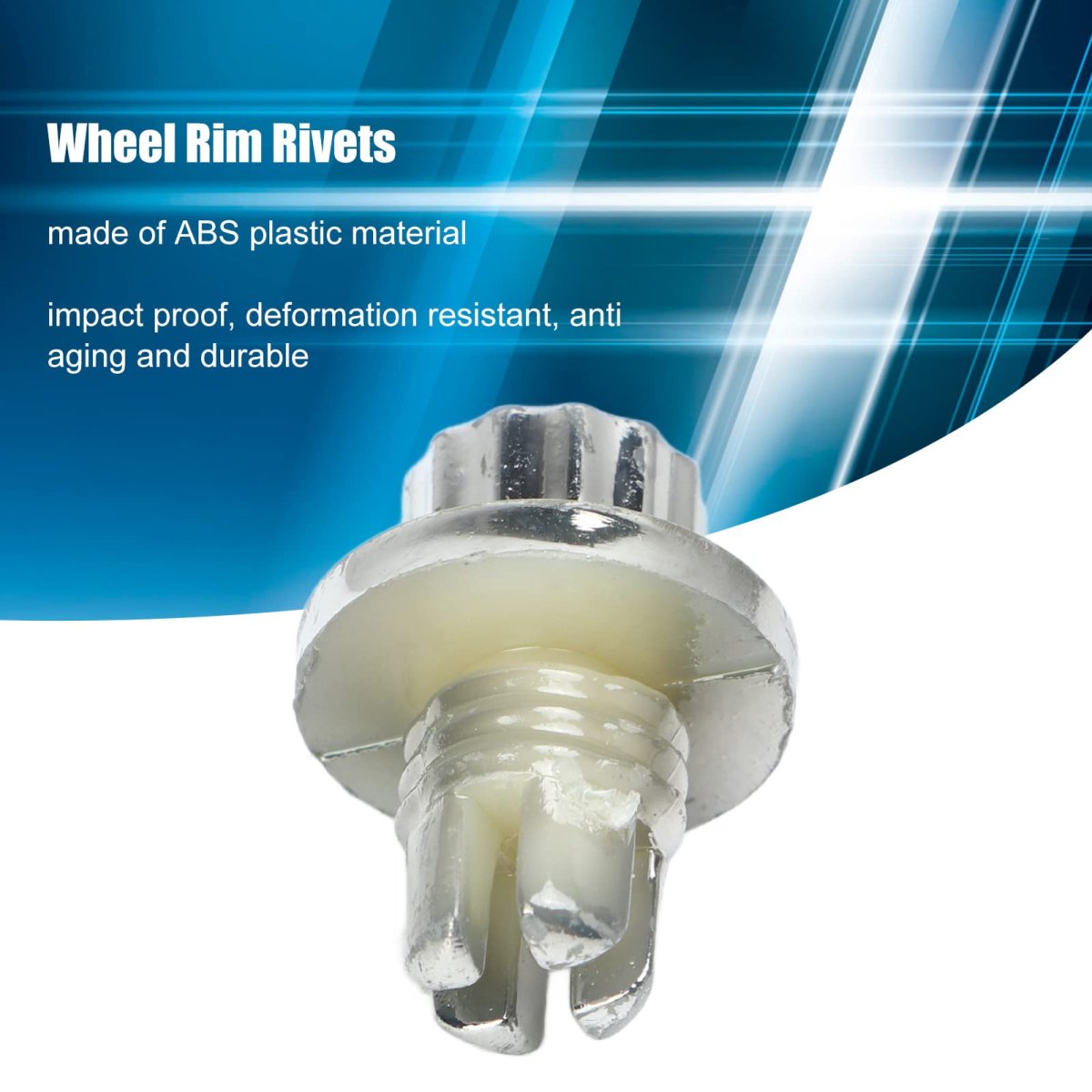 Material: The wheel lip rivet nut is made of ABS plastic material, which has higher wear resistance, impact resistance, deformation resistance, not easy to damage, and long service life.. Professional Design: Adopting professional design process, manufactured according to standard specifications, exquisite workmanship and unique design ensure stable performance and high reliability.. Stylish Appearance: The silver appearance matches the color of most car tires and is not easily faded, with a shiny appearance.. Simple Installation: Easy to install, no complicated tools and operations, just set directly on the wheel, can perfectly replace the old or damaged ones, can be perfectly matched with your car..