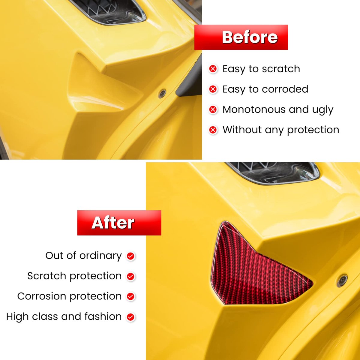 Great Compatibility Perfectly fit for Chevrolet Chevy C7 Corvette Z06, Z51, ZR1, Stingray, Grand Sport 2014 2015 2016 2017 2018 2019. High precision original car data model design, manufactured to OEM specifications, accurately fits edges.. Perfect Upgrade Provides a high class, unique and fashion decor style to enhance the visual appearance of your car. It can cover existing scratches and prevent your door handle from fingernails, key scratches and etc. Dress up your door handle and makes your car out of ordinary.. Superior Material Premium grade automotive ABS plastic with UV treatment, light-weight and durability, impact resistance and anti-corrosion, high and low temperature resistance. Never rust, fade or peel. Quite strong and stable.. Easy To Install & Clean No drilling/tools required. No damage to your car. Clean the part, peel the tabs, then carefully stick it in place. Not easily stained and very easy to clean to make it look new for a long service life. (Use a lighter to heat the 3M adhesive tape slightly for better effect).Other fine products