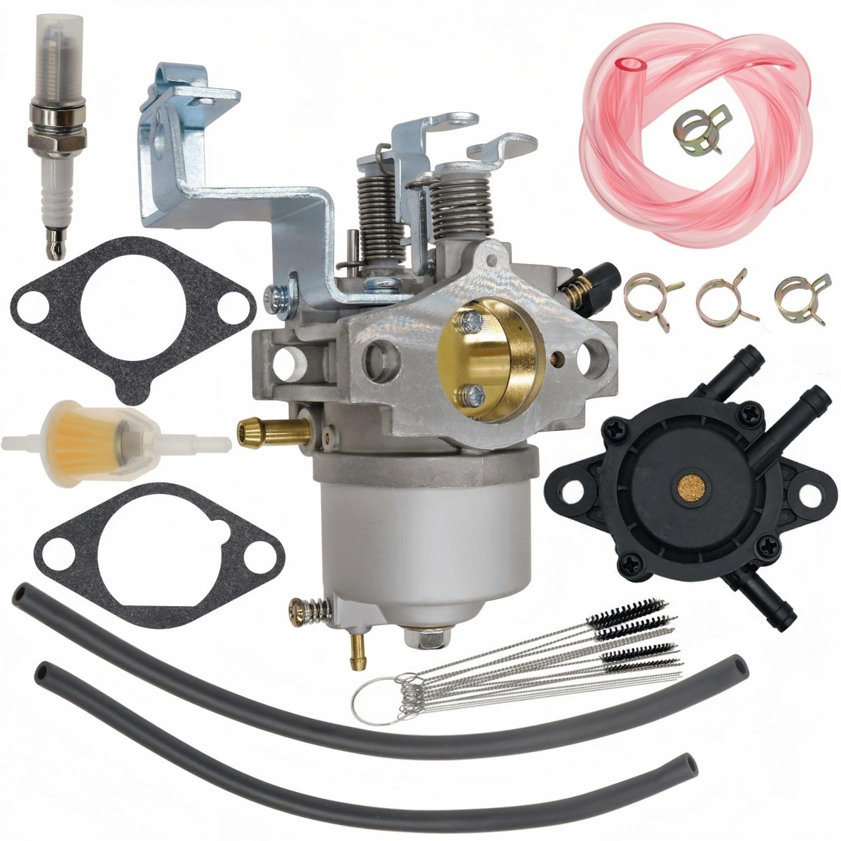 Replaces part numbers: JR6-14101-00, JR6-14101-01, JR6-14101-02, JR6-14101-00-00, JR6-14101-01-00, JR6-14101-02-00, 13351, 17560, 520-185. Carburetor compatible with Yamaha golf cart G22 G23 G24 G25 G26 G27 G28 G29 4-cycle gas club car 2003-present. Package Include : 1 x Golf Cart Carburetor , 1X Fuel Pump ,2 X Gaskets , 3 X Fuel Line , 1 X Fuel Filter , 1 X Spark Plug , 4 X Clamps ,1 X Carburetor Cleaning Kit As the Picture Shows for your subsequent carburetor maintenance. Care must be taken not to apply too much torque to the nuts/threaded studs during installation, as it can cause the spacer to break, a common issue with these model carts.Other fine products
