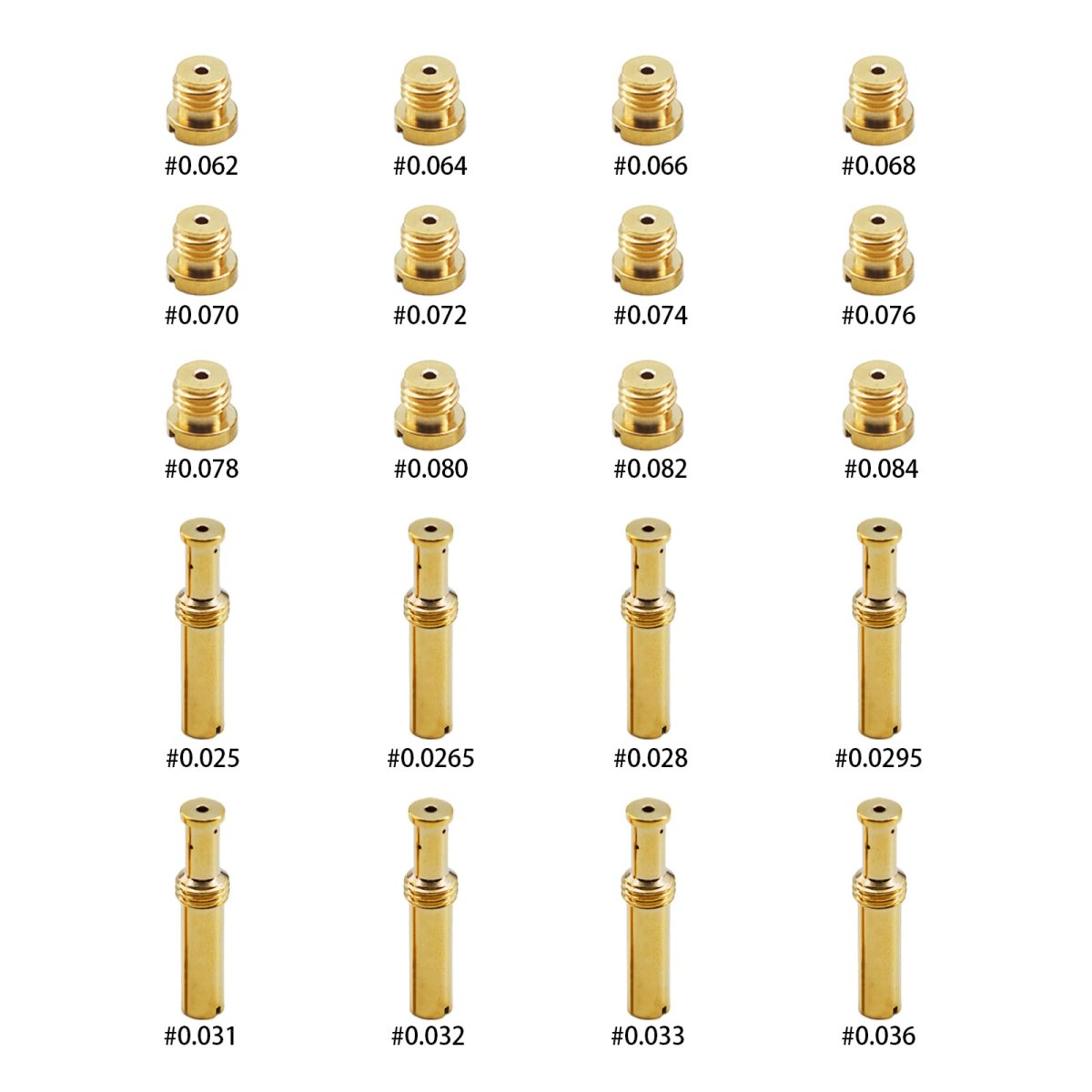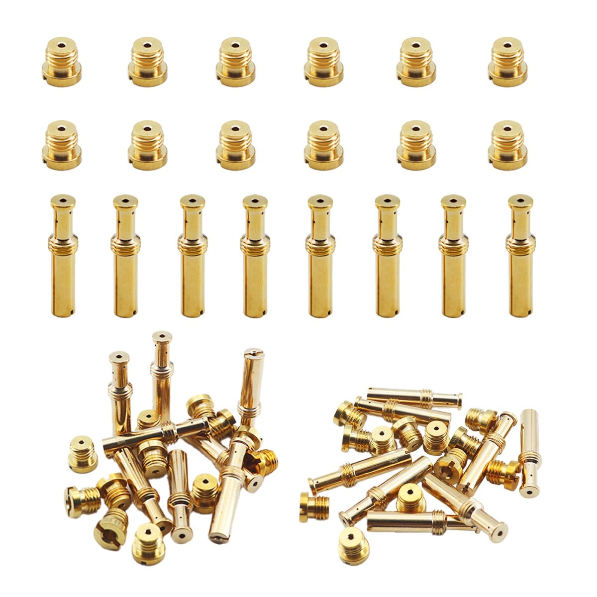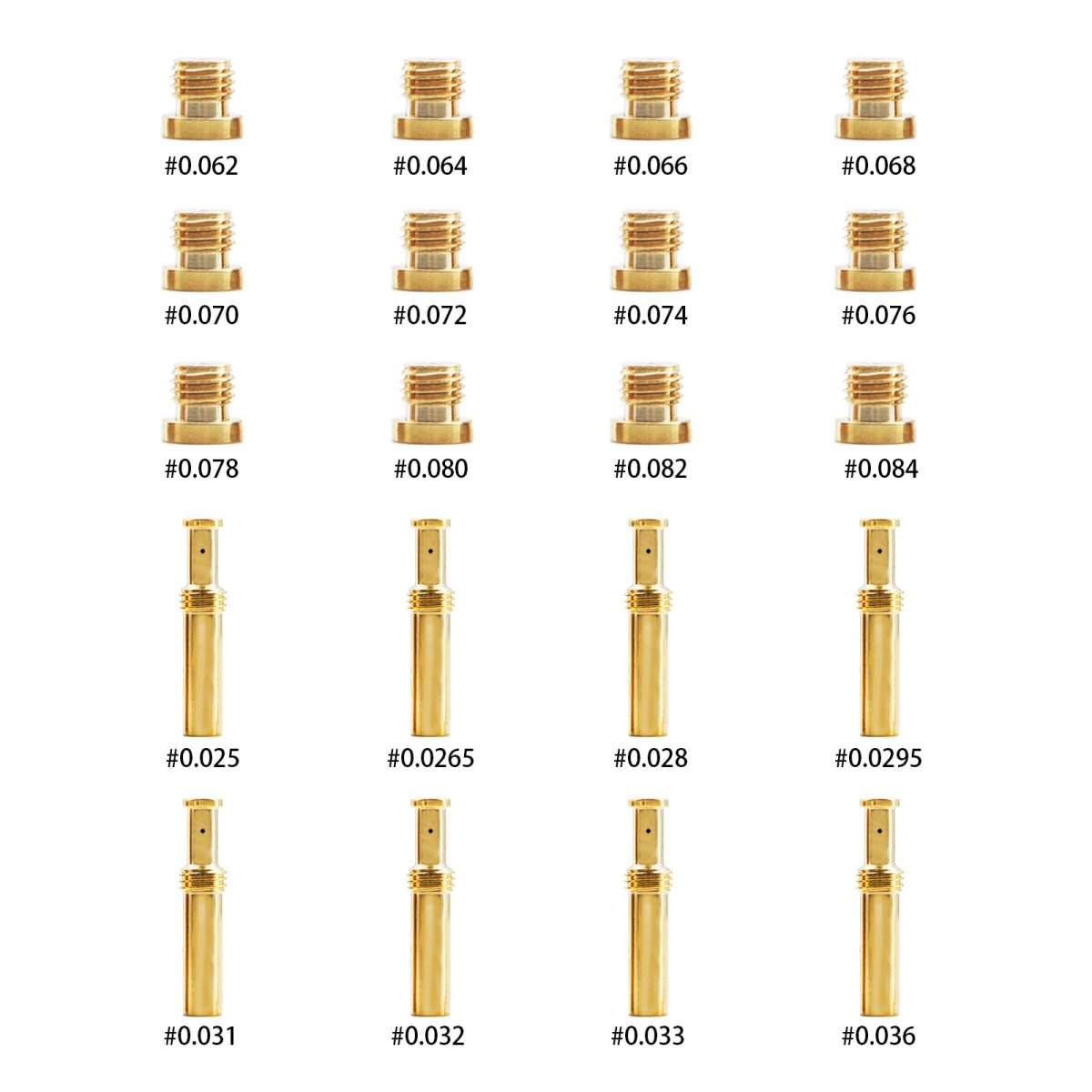 Compatible Models:Correct Thread Pitch for S&S Super E and Super G carburetors.Fits for most Super E and Super G models. and Ultima R1 / R2 carburetors.. Compatible With:May fit some S&S Super B carburetors, but design differences exist. We recommend checking your Super B's jet thread pitch before purchase.. Size of 8 pcs intermediate jets: 0.025", 0.0265", 0.028", 0.0295", 0.031", 0.032", 0.033",0.036". Size of 12 pcs main jets: 0.062", 0.064", 0.066", 0.068", 0.070", 0.072", 0.074", 0.076", 0.078", 0.080", 0.082", 0.084". : All jets is made of brass without any burrs or other noticeable defects,brass for corrosion resistance, ductility at high temperatures, and low magnetic permeability. the threads features even color, smooth and clean, which is very easy to install..Other fine products