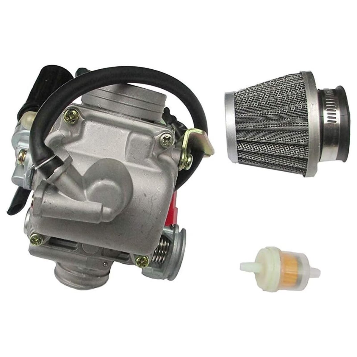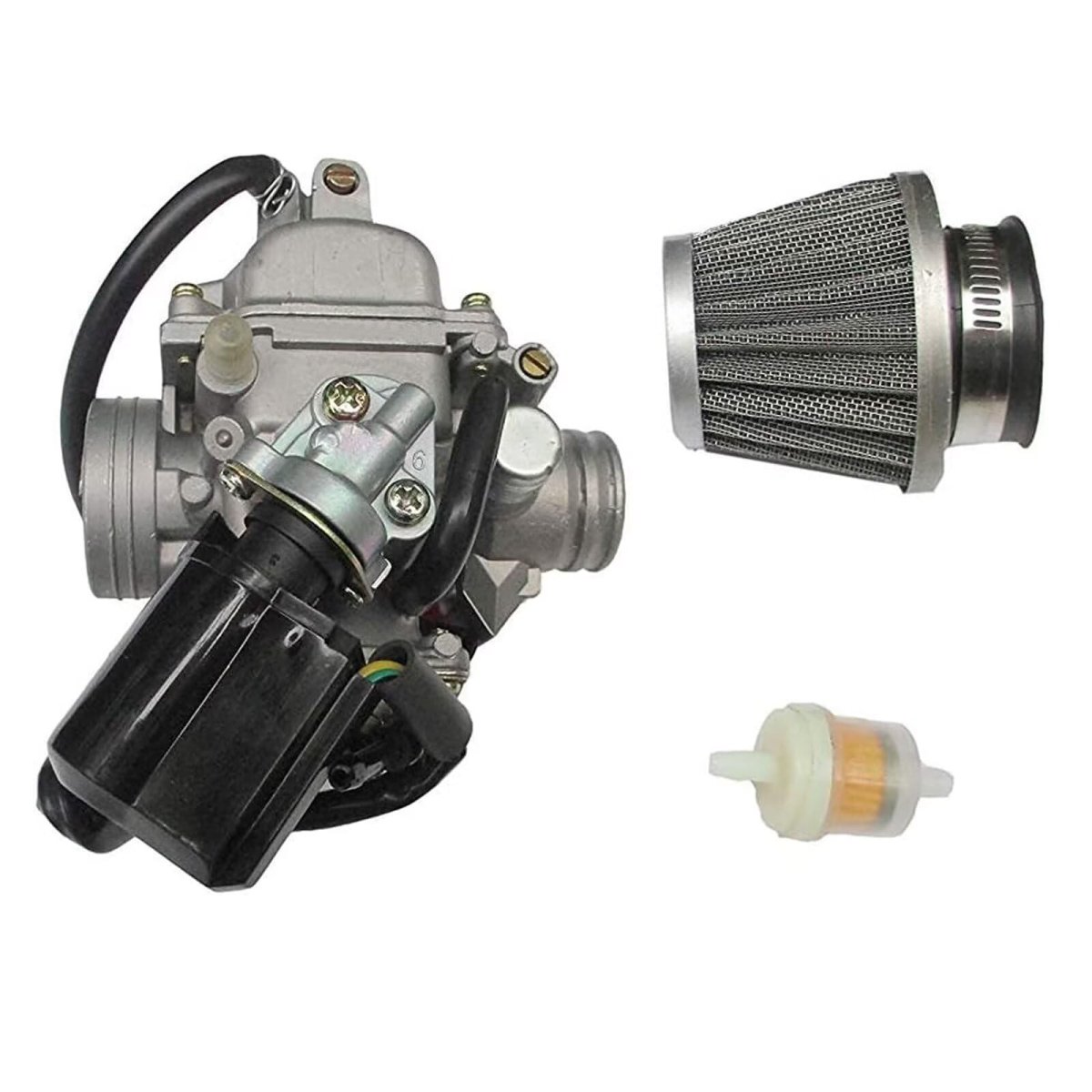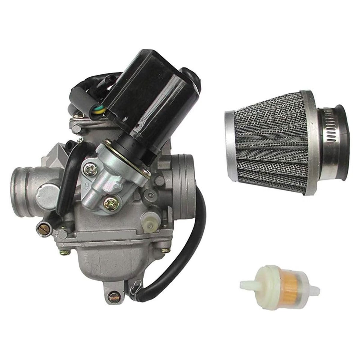 This is a new replacement GY6 150cc Scooter Carburetor with Electric Choke Inner Diameter (intake side): 24mm; Outer Diameter (intake side): 32mm; Inner Diameter (air filter side): 38mm; Outer Diameter (air filter side): 42mm.. This Carburetor for most of Chinese Scooters and Mopeds with 125cc - 150cc 4-stroke GY6 QMJ/QMI157, QMJ/QMI152 engine. Fits for many models and makes of Chinese Scooters, ATVs, Mopeds and Go Karts. for Roketa/ Sunl/ Baja/ Kazuma/ Carroll Stream Eagle/ Taotao/ Panterra/ Kymco/ Redcat Tank Giovanni Aimex Jackel Wildfire Xtreme Seaseng Qlink Yiben Jonway Jmstar/ Vento/ Tng. and Various unlisted makes/models. QMB139 50cc/49cc. Package include: 1x Carburetor set as images display.
