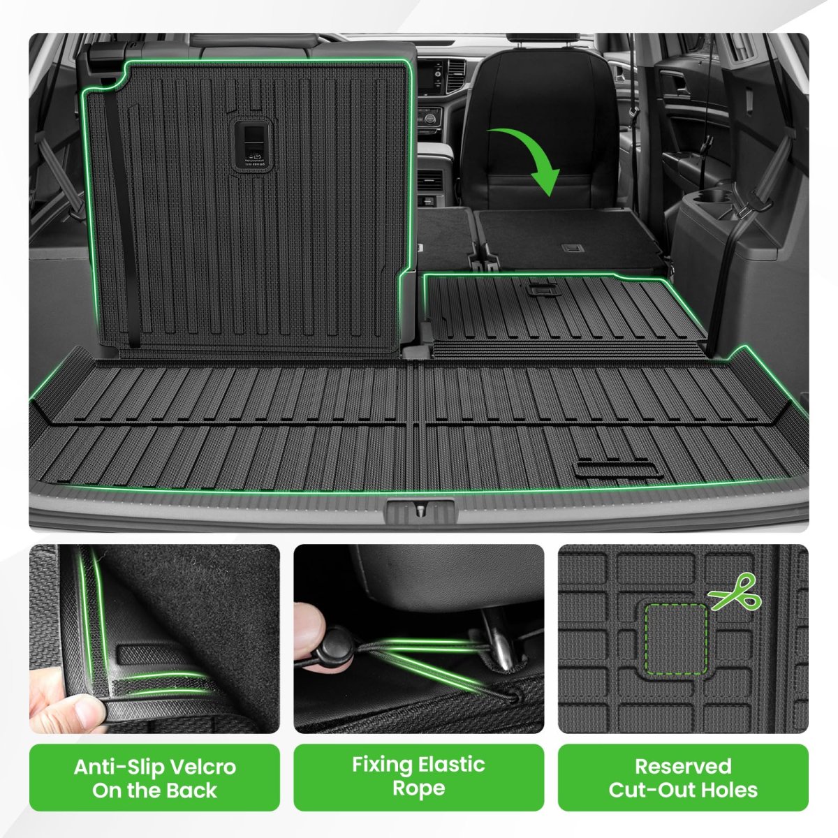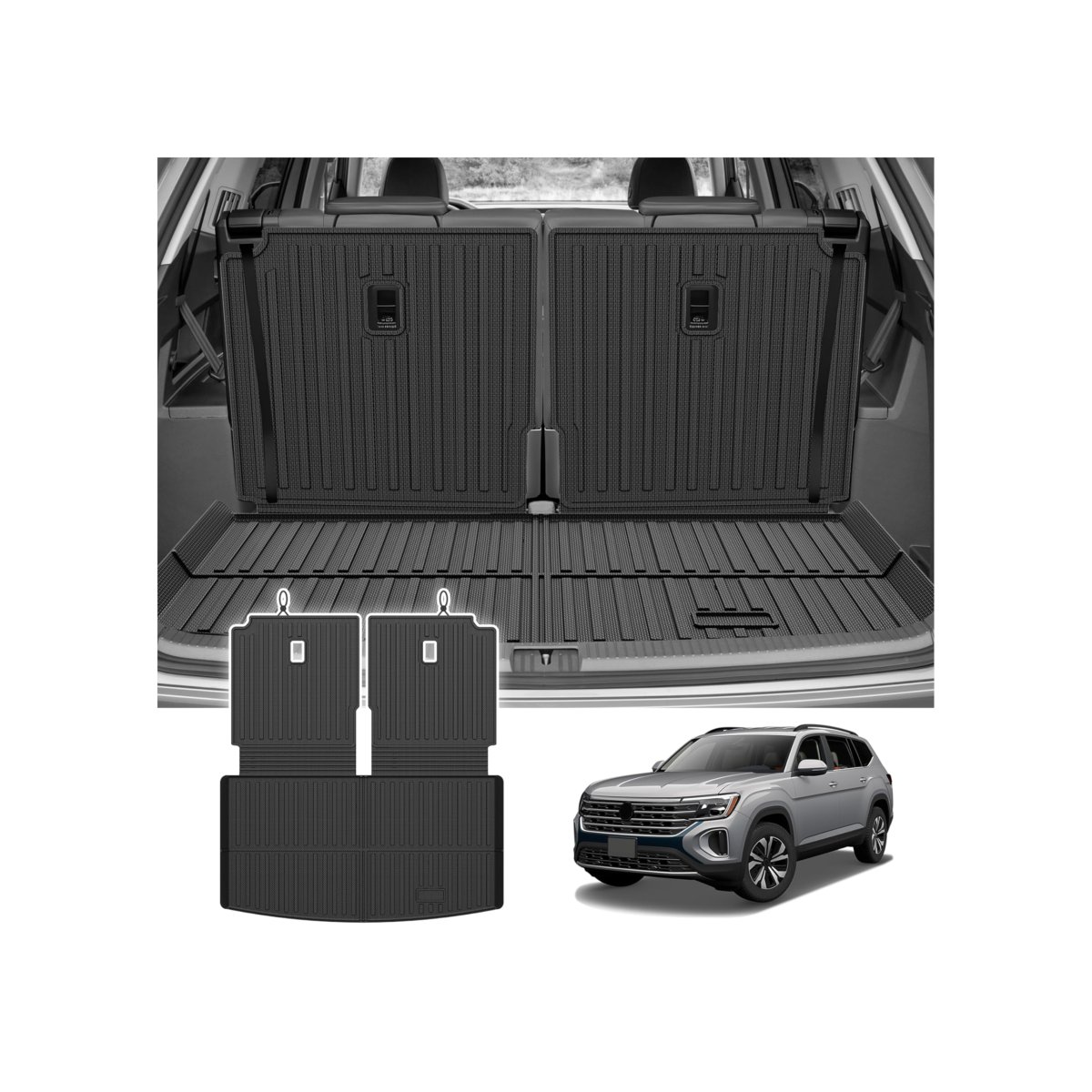 Atlas Accessories -- The cargo liner is designed for the VW Volkswagen Atlas 2018-2025 2026 (Not for Cross Sport) based on correct vehicle information; no need for trimming. Adopts 3D screening technology to capture every corner and crevice to offer perfect fit and coverage.. New & Upgraded Materials -- The Atlas cargo liner accessories are made of a new material, TPE, which is eco-friendly, non-toxic and odorless. It can be used even at a temperature of 122F, is more temperature resistant than PVC, 100% safe for your family.. Scratch Resistance-- High-density TPE materials ensure high elasticity to make the Atlas trunk mat accessories wear-resistant, scratch-resistant, and durable. It will not deform, harden, or break under extreme weather but remains flexible and resilient.. Built for Protection-- The groove design of the Atlas cargo liners, forms channels to collect water, mud, snow, debris, etc, with the raised edge to avoid leakage, providing all weather protection. The anti-slip texture also helps prevent cargo from moving when driving and protects your car's trunk.. Easy to Clean -- The Atlas cargo liner accessories are waterproof, when it's dirty, you just need 3 seconds to rinse it with water and wipe it with a towel, then it will become dried and new soon..Other fine products