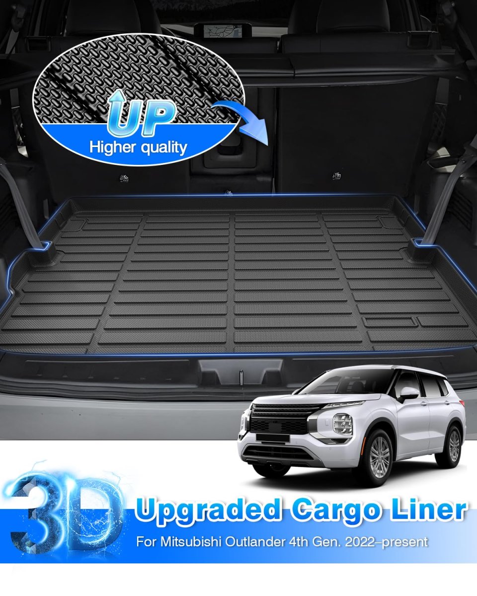Outlander Accessories -- The trunk liner is designed for the Mitsubishi Outlander PHEV 2023 2024 2025 2026 based on correct vehicle information, no need for trimming. Adopts 3D screening technology to capture every corner and crevice to offer perfect fit and coverage.. New & Upgraded Materials -- The Outlander cargo liner is made of new materials TPE, which is eco-friendly, non-toxic and odorless. It can be used even at a temperature of 122F, is more temperature resistant than PVC, 100% safe for your family.. Scratch Resistance-- High-density TPE materials ensure high elasticity to make the Outlander cargo liner wear-resistant, scratch-resistant, and durable. It will not deform, harden, or break under extreme weather, but remains flexible and resilient.. Built for Protection-- The groove design of the Outlander cargo liner, forms channels to collect water, mud, snow, debris, etc, with the raised edge to avoid leakage, providing all weather protection. The anti-slip texture also helps prevent cargo from moving when driving and protects your car's trunk.. Easy to Clean -- The Outlander cargo liner is waterproof, when it's dirty, you just need 3 seconds to rinse it with water and wipe it with a towel, then it will become dried and new soon..Other fine products