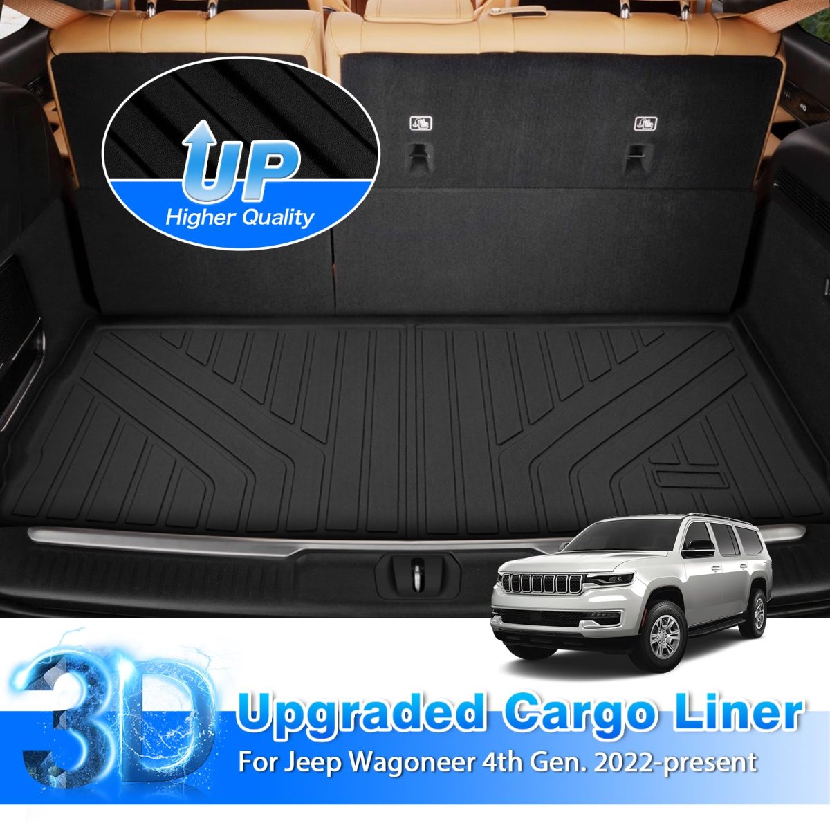 Wagoneer Accessories -- The trunk mat is designed for the Jeep Wagoneer 2022 2023 2024 2025 2026 based on correct vehicle information, no need for trimming. Adopts 3D screening technology to capture every corner and crevice to offer perfect fit and coverage.. New & Upgraded Materials -- The Wagoneer cargo liner is made of new materials TPE, which is eco-friendly, non-toxic and odorless. It can be used even at a temperature of 122F, is more temperature resistant than PVC, 100% safe for your family.. Scratch Resistance-- High-density TPE materials ensure high elasticity to make the Wagoneer cargo liner wear-resistant, scratch-resistant, and durable. It will not deform, harden, or break under extreme weather, but remains flexible and resilient.. Built for Protection-- The groove design of the Wagoneer cargo liner, forms channels to collect water, mud, snow, debris, etc, with the raised edge to avoid leakage, providing all weather protection. The anti-slip texture also helps prevent cargo from moving when driving and protects your car's trunk.. Easy to Clean -- The Wagoneer cargo liner is waterproof, when it's dirty, you just need 3 seconds to rinse it with water and wipe it with a towel, then it will become dried and new soon..Other fine products