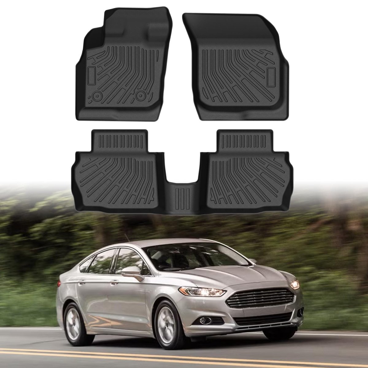 Fusion Accessories -- The CARTIST floor mats are custom-made for the 2013 2014 2015 2016 Ford Fusion & Lincoln MKZ, based on correct vehicle information, without trimming. Adopts 3D screening technology to capture every corner and crevice to offer perfect fit and coverage.. New & Upgraded Materials -- The Fusion floor mats carpet are made of new materials TPE, which is eco-friendly, non-toxic, and odorless. It can be used even at a temperature of 122F, is more temperature resistant than PVC, and is 100% safe for your family.. Durable -- High-density TPE materials ensure high elasticity to make the Fusion floor mats wear-resistant, scratch-resistant, and durable. It will not deform, harden, or break under extreme weather, but remains flexible and resilient.. Safe Driving -- The Fusion floor mats fit the curvature of the car floor, with anti-slip grooves on top to provide comfortable foot traction. The anti-skid design on the back helps to keep it in place and allows flexible movement of the gas and brake pedal, making driving safer.. All Weather Protect & Cleaning -- The Fusion floor mats are waterproof, and the groove design forms channels to collect water, mud, snow, debris, ect, to avoid accidental skidding and stains to original car carpets. Easy to clean by rinsing it with water, and dry with towel..