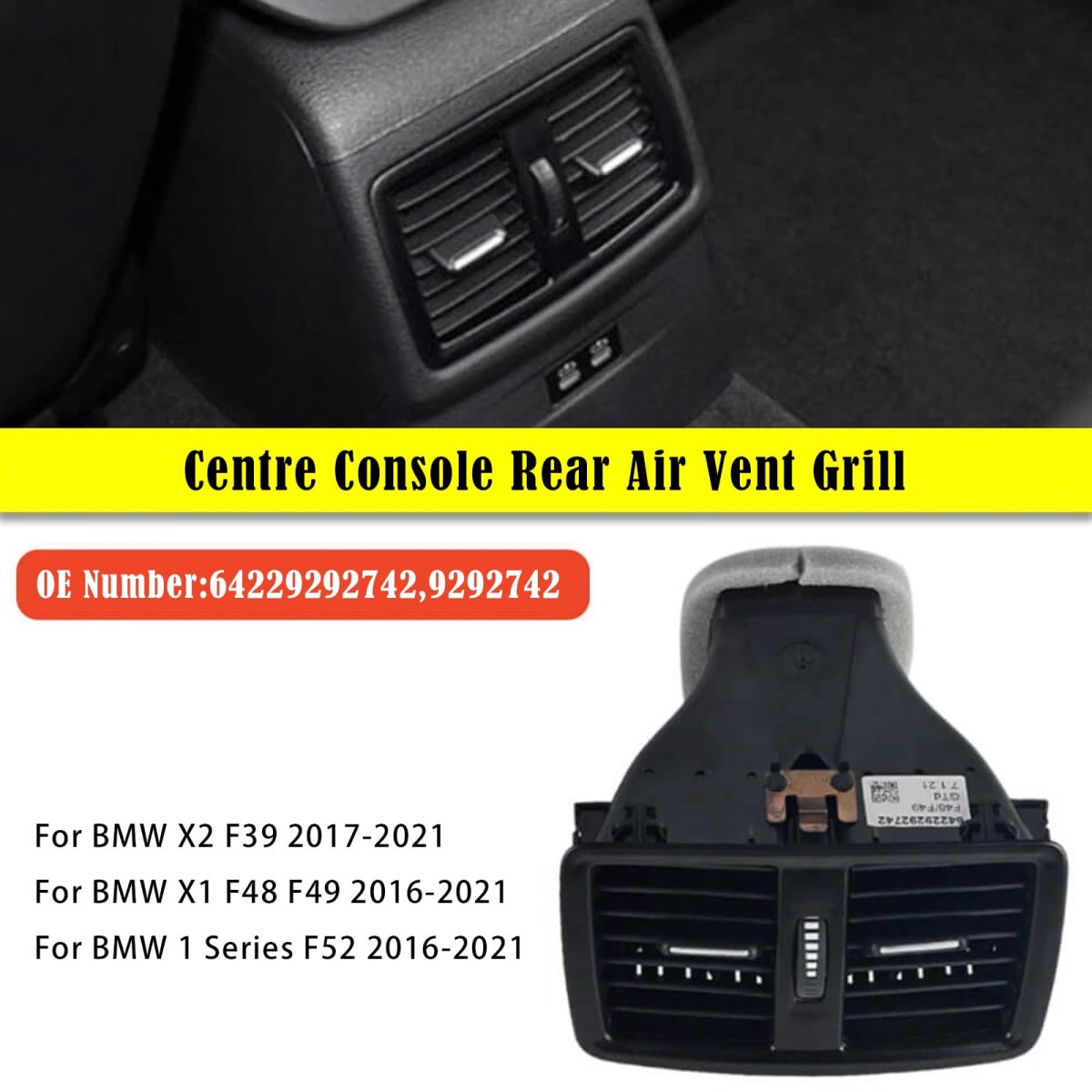 - Centre Console Rear Air Vent Grill For Bmw X2 F39 2017-2021 X1 F48 F49 2016-2021 1 Series F52 2016-21 642 9292742