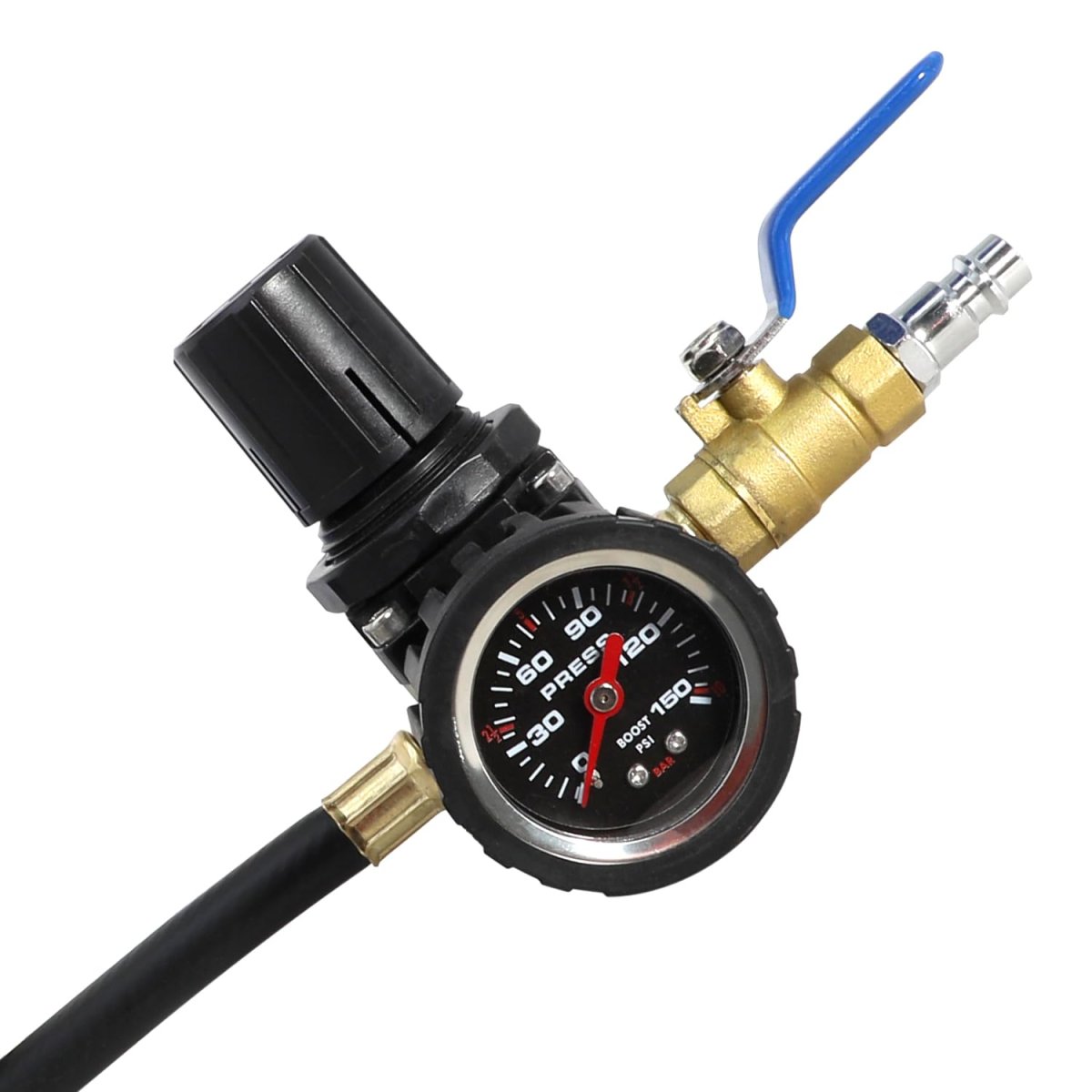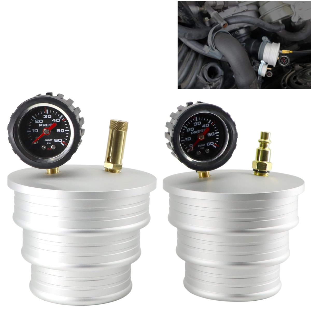 Turbo Leak Test: Used to test a vehicle's turbocharging system or air cooler system. This tester can provide accurate detection to avoid performance degradation or increased oil consumption due to leaks. If there are any leaks in the system, it can lead to a drop in boost pressure, which in turn leads to a loss of power, and this tool is used to detect leaks so that they can be repaired. Easy to Use: The kit comes with a 60psi gauge and 3-3.5-4' stepped billet end cap, clamp these hose ends onto the boost side piping, one at each end, and pressure/leak test the whole thing. 3 pressure gauges provide the readings needed to diagnose even slow leaks over time. The regulator can control the test pressure and will not damage the system due to excessive pressure. The extension tube design makes the connection more flexible. There is no need to adjust the position during testing, which. Accurate Detection: The kit includes a pressure regulator and an air on/off valve for switching or regulating pressure. for accurate pressure measurement in the hose, by controlling the pressure gauge and adjusting it to the right range, It can detect tiny leaks in the CAC system, detect where there is a problematic leak and accurately eliminate leaks.. Application Vehicles: For Class 7 and Class 8 big trucks, tractors, and other heavy equipment. tips: If you have some experience in mechanical maintenance, you can basically get started quickly without additional guidance. After the test is completed, the induction is also very convenient, and no oil stains will be left or damage to the system. However, it should be noted that when conducting a pressure test, it is necessary to ensure that all connections are interrupted to eliminate safety haza. Package Includes: 2* Machined end caps, 2* boost gauges, 1* 5 Ft. extension hose, 1* Stainless steel shut-off ball valve, 1* air pressure regulator, 2* Fittings, 2* Thread Sealant Tape.Other fine products