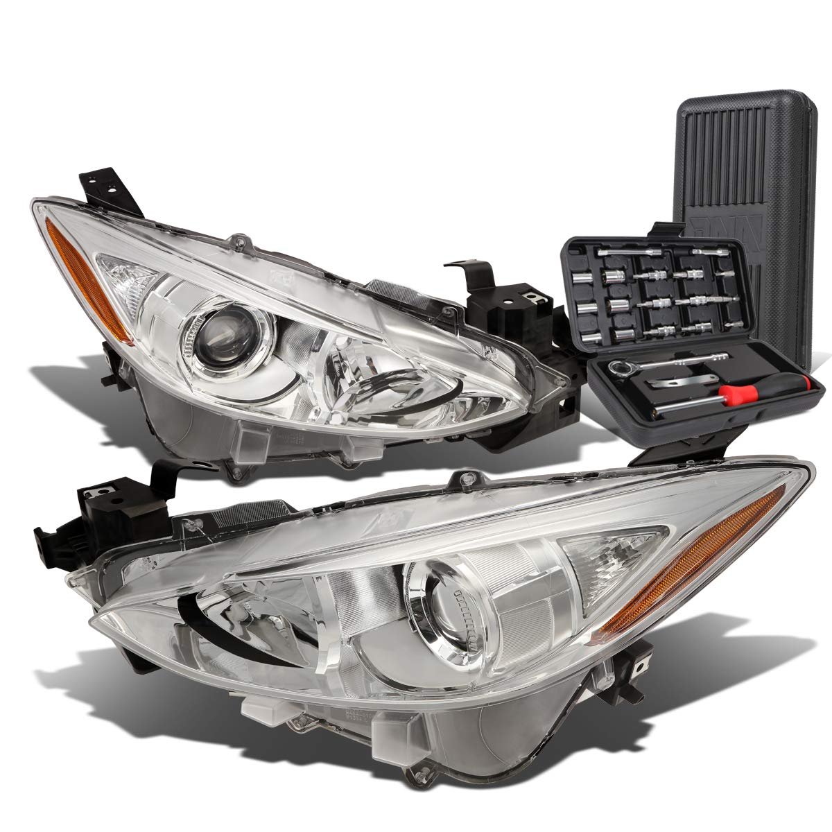 - Chrome Housing Amber Corner Projector Headlight Lamps Tool Kit Compatible With Mazda 3 14-17