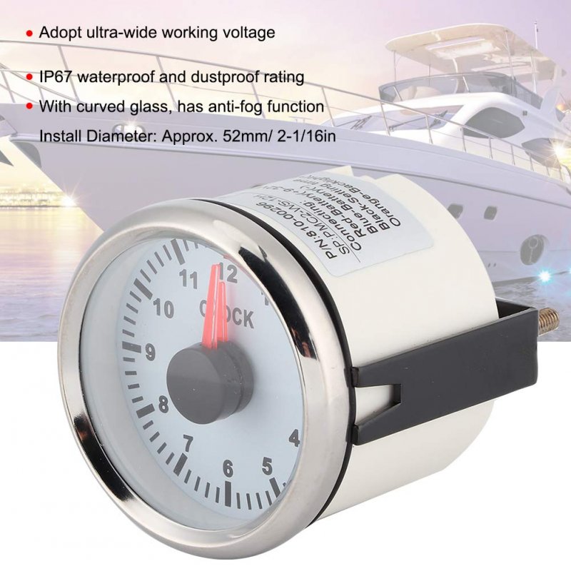 Eling 52mm 2 Clock Meter Gauge 12-hour Format 9-32v White Stainless Steel