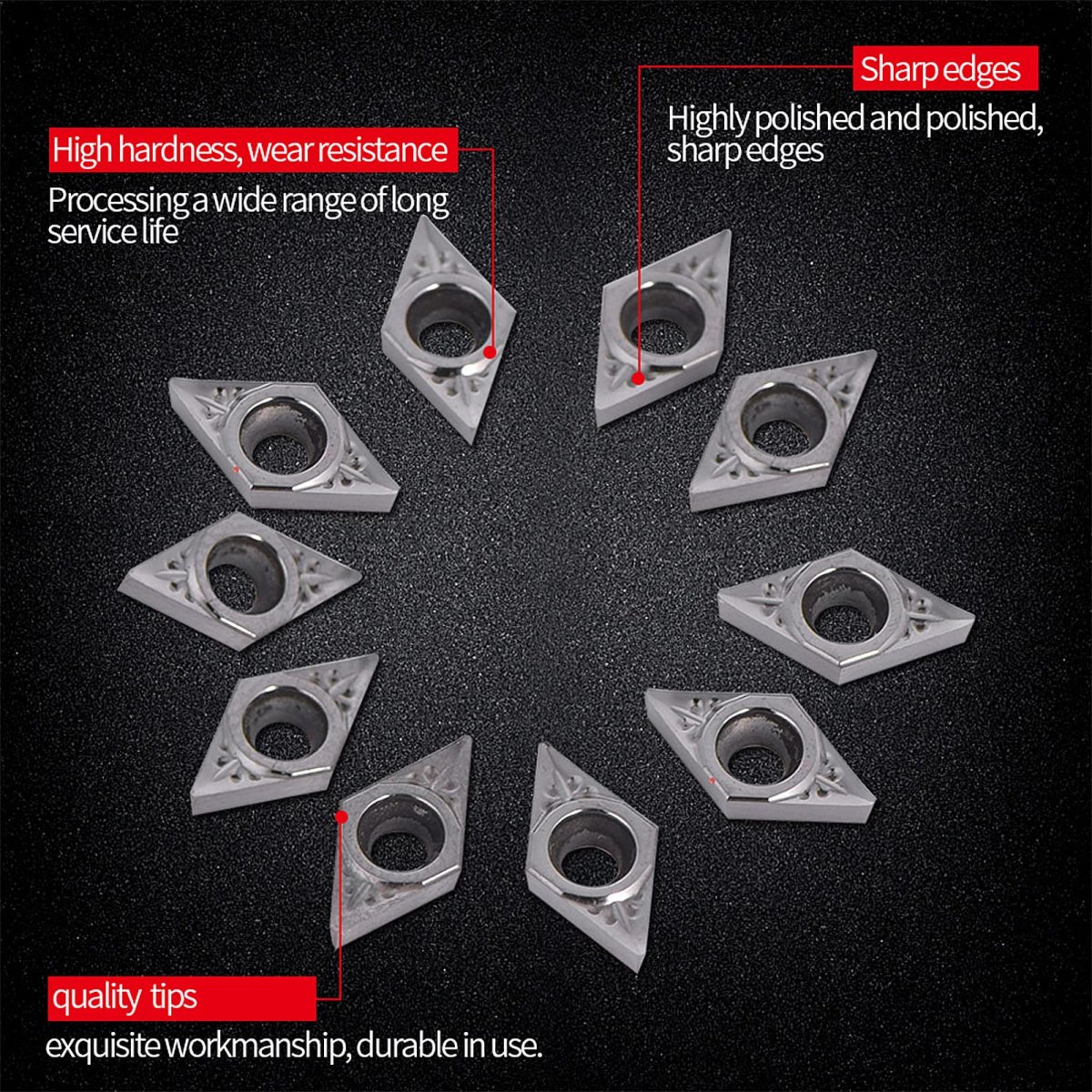 [Excellent Stability and Wear] With high hardness and heat. [Convenient Set of 10 Pcs] For easy replacement of broken inserts. [Versatile Applications] Suitable for a variety of nonferrous metals and alloys. [Easy to Use and] For convenient. [Carbide Material] Ensures durability and exquisite workmanship.Other fine products