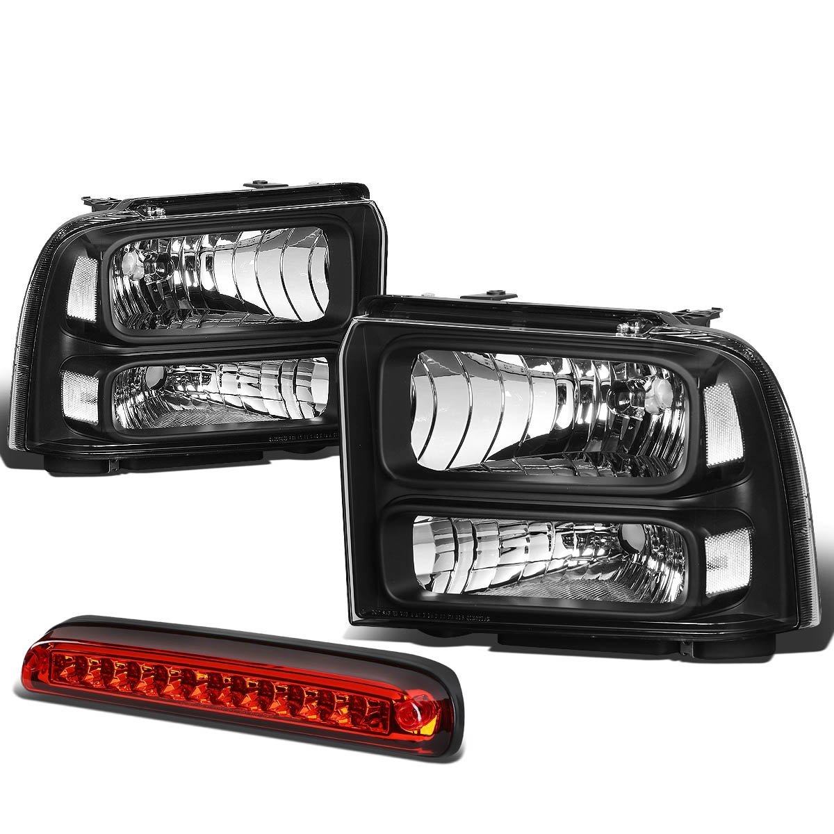 - Compatible With Ford Super Duty Pair Of Black Housing Clear Corner Headlight Red Led 3rd Brake Light W O Cargo