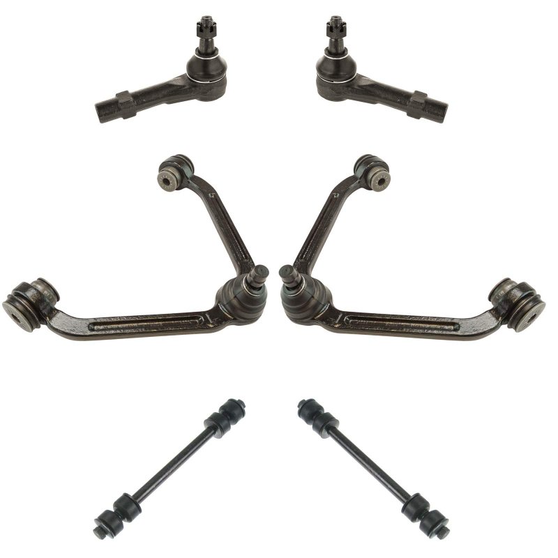 Vehicle Fitment Details:Fits Mazda B3000 DS Troy Lee1999-2007 DriveType: RWD Note: with Torsion Bar Position: Front. Enhanced Steering Control:The Front Suspension Kit Includes Front Outer Tie Rods, Which Help Improve Steering Responsiveness and Control For A Smoother Driving Experience.. Improved Stability:With Front Upper Control Arms and Ball Joints, This Kit Enhances The Stability of Your Vehicle, Reducing Body Roll and Improving Overall Handling.. Enhanced Safety:The Front Sway Bar Links Included In The Kit Help To Minimize Body Sway During Turns, Ensuring Better Stability and Safety On The Road.. Product Features:Kit Includes: (2) Front Outer Tie Rods (2) Front Upper Control Arms with Ball Joints (2) Front Sway Bar Links Quantity: 6 Piece.Other fine products