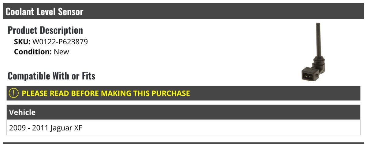- Coolant Level Sensor For 2009-2011 Jaguar Xf