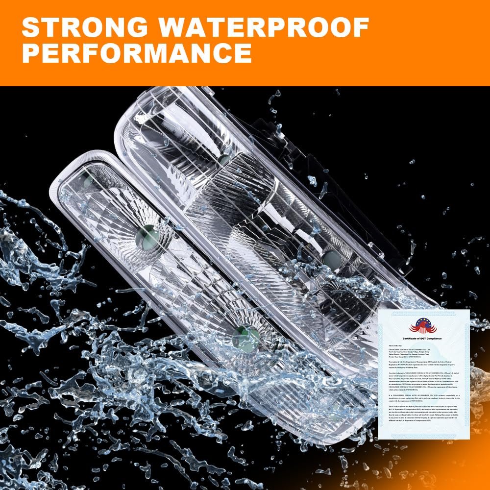 FITMENT:Compatible with Chevy Silverado 1500 2500 3500 1999-2002,Compatible with Suburban/ Tahoe 2000-2006. Premium Materials: The headlights and fog Lights are made from polycarbonate material, offering excellent impact resistance to withstand collisions with small stones and mud on the road. The Lenses also resist yellowing and cracking.. DOT/SAE Certifications: The headlights and fog Lights feature a sealed design with a one-way ventilation port at the rear, effectively preventing moisture buildup and keeping the interior dry. The unique structural design also prevents water from entering the lamp housing.. AESTHETICS:Headlights and fog Lights can be adapted to the vehicle and come in a variety of colors for you to choose from, so you can match different styles to your vehicle and give it a new look. OE STANDARD:Meets the Original Equipment (OE) standards.Interchange Part Number:1225-0194L,1225-0194R, 10368476,10368477.Other fine products