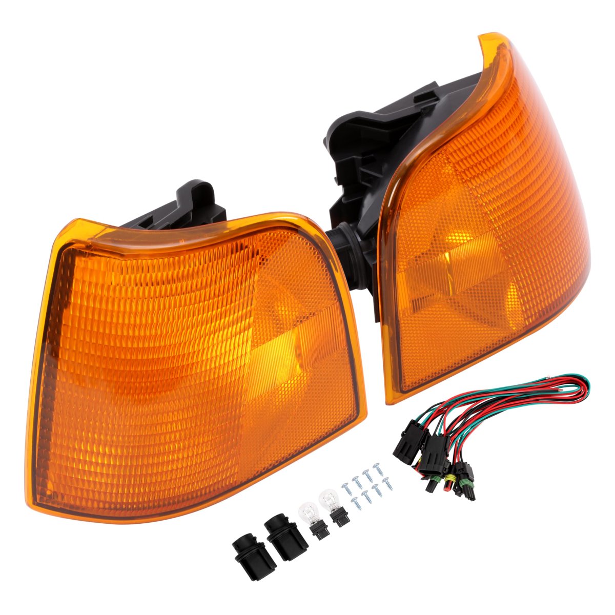 Stylish Appearance: Bulb Shape Code: 3157. Power 12v/27w. The corner light are made of plastic to be lightweight and durable enough to withstand the vibration and impact of a moving vehicle. The amber lens add a touch of modernity to the front of your vehicle.. Direct Replacement: Directly replace your damaged or inoperable aging corner light. This is a complete corner lights that includes driver side and passenger side.. Accident Reduction: Corner Light will enhance safety by improving visibility during turns, reducing the risk of accidents. It also contribute to overall road compliance, ensuring that the vehicle meets necessary lighting regulations.. Easy Installation: Installation hardware are included. But no instructions! Just plug and play operation. Only 1 pair x corner light(amber lens, halogen bulbs are included)..Other fine products