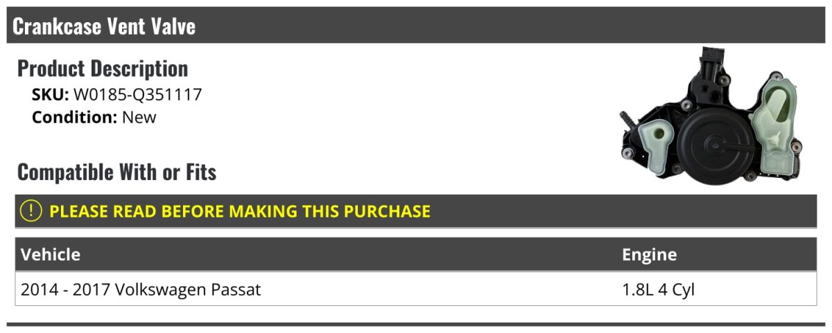 - Crankcase Vent Valve For 2014-2017 Volkswagen Passat 1 8l 4-cylinder