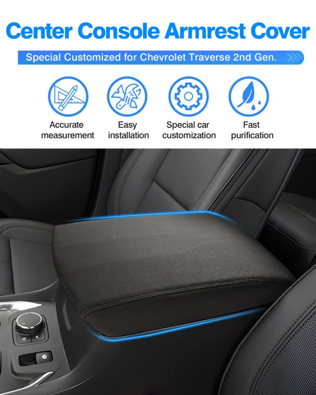 Custom Fit---This car armrest cover is specially designed for Chevrolet Traverse 2018-2023.Customized according to the original car,100% fits perfectly.. Full Protection---Protect the armrest of the center console from dust, pet paws, nails or other scratches, and improve the comfort of your armrest. One of the must-have accessories for Traverse to keep the armrest box clean and beauty.. Upgraded Material---Made of soft leather materials,soft and elastic,which is environmental protection material. Wear-resistant and scratch-resistant, excellent toughness, not easy to be torn. Our center console cover has long life service.. Easy To Clean---Just use a damp cloth to remove dirt. Waterproof.No need to worry about your vehicle getting damp and moldy.A best and economical choice to give your armrest a outlook and upgrade the interior trim.. Convenient Installation---Just cover it on the armrest box, no slipping by tightly fit, and has no effect on the opening and closing of the armrest..Other fine products