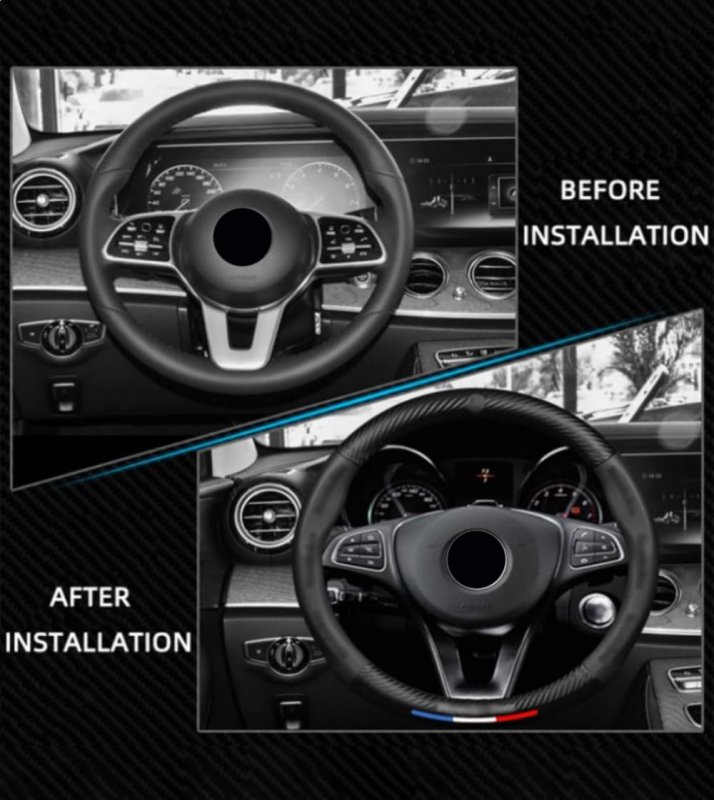 - Customized Steering Wheel Cover For Mercedes Benz Premium Leather Carbon Fiber Texture With Logo Non-slip Breathable