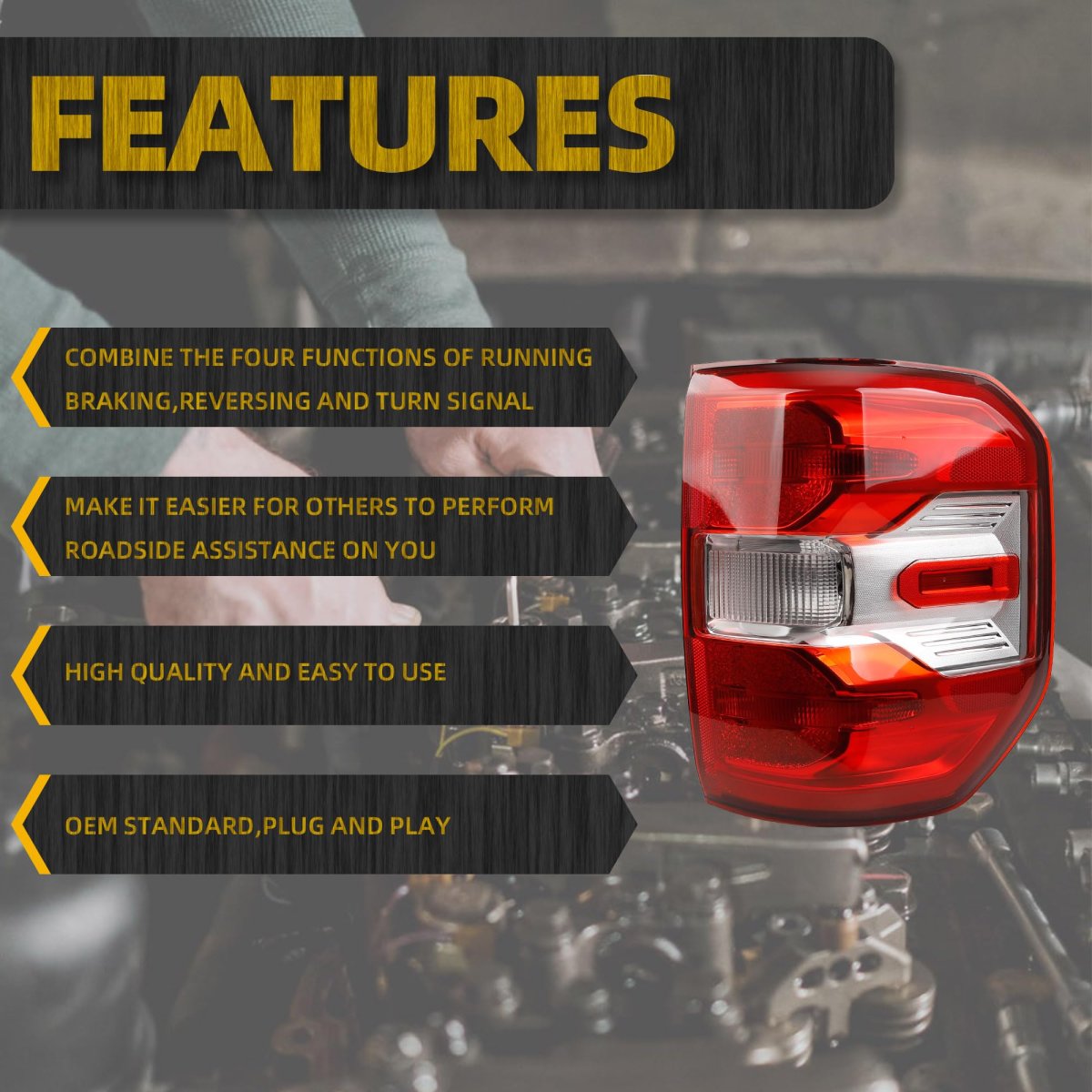 FitmentThe Tail light Assembly Compatible with 2022 2023 2024 Ford Maverick Lariat. ReplaceFord Maverick Tail light Assembly Replace# NZ6Z-13404-B FO2801289. AdvantageFord Maverick taillight is a Halogen light source, which is brighter and can work perfectly in rainy and foggy weather, improving driving safety.. FeaturesFord Maverick Rear Lamp is OEM Standard ,Made of materials, Waterproof, dustproof, anti-fog and Reliable.With bulb and wiring harness ,direct installation. Package listRight Passenger Side Taillight *1PC.Other fine products