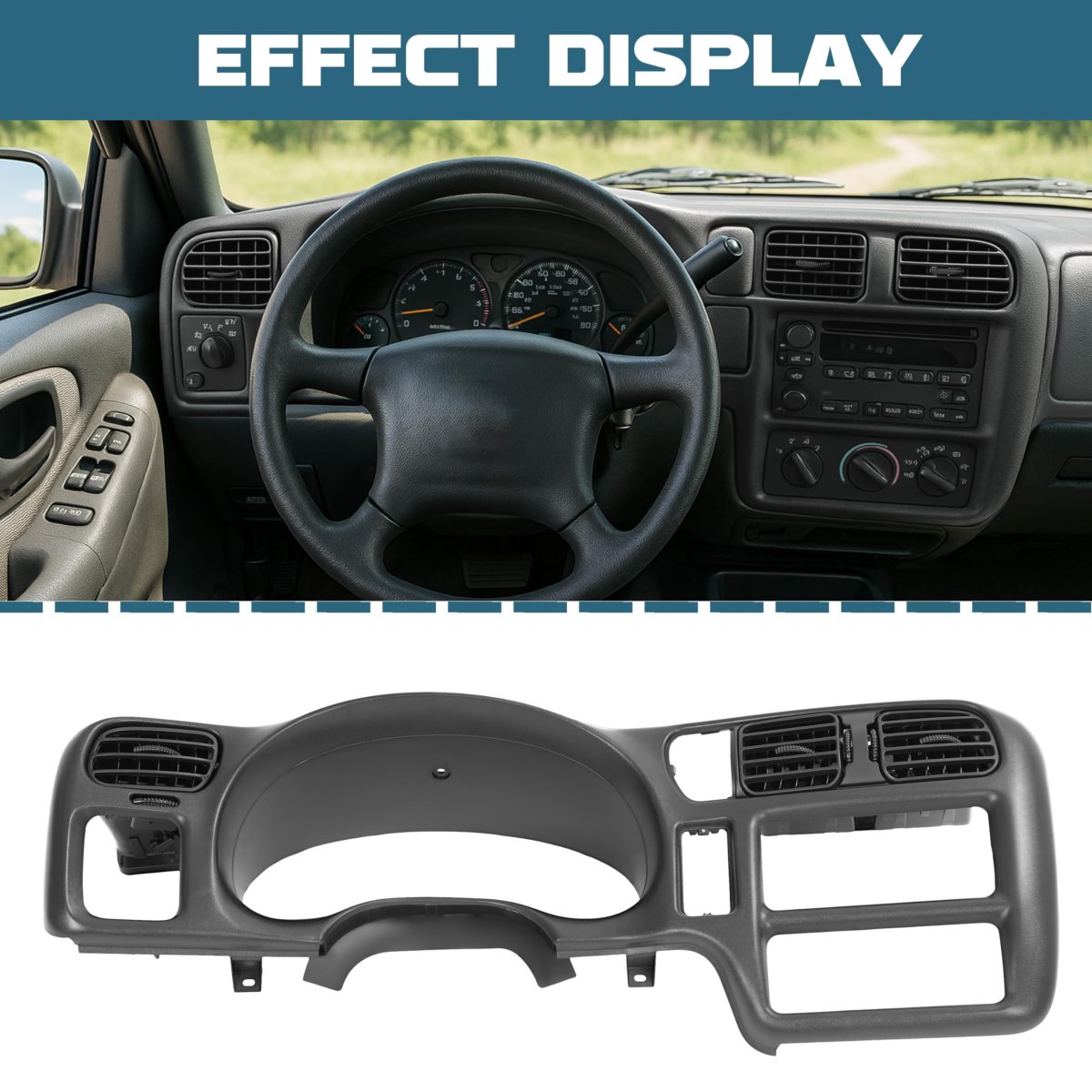Fitment: Compatible with 1998-2004 Chevy Chevrolet S10; Compatible with 1998-2004 Chevy Chevrolet Blazer; Compatible with 1998-2004 GMC Jimmy. Only fit single din. Performance: Color: black. Made of high-quality ABS plastic, it is durable and can be used to replace your old Dashboard Radio Panel. Beauty and decoration: As a part of the car interior, the Dashboard Radio Panel helps to improve the overall appearance and interior design of the car and make the interior space more beautiful. Package: 1 X Dashboard Radio Panel. Installation accessories and installation instructions are not included. Installation: Simple installation, using screws and buckles to install. Professional installation is highly recommended.Other fine products