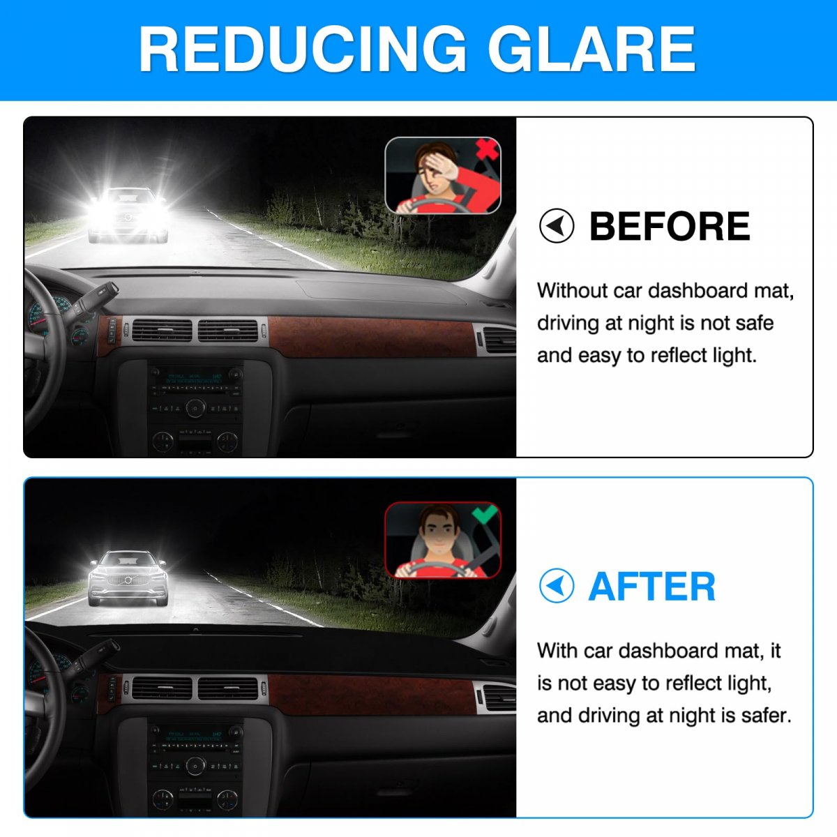 Powerful Protector---Protect your dashboard from long-term sun exposure and UV rays, which may lead to cracking, discoloration, and warping. Autorder dash cover can help reduce sun glare from the dashboard and keep it looking brand-new. Giving you a comfortable and safe driving experience.. Upgrade Velvet---Our dash mat is made of high-quality velvet fabric, which is light and soft and resistant to distorting, fading, and wrinkles. The thick black fluff layer effectively absorbs heat, keeping the dash cooler in the summer and warmer in the winter.. Nonslip Design---Designed with densely silicone little dots on the back side, our dashboard mat features a nonslip that can better anti-slip, making it non-displacement.Well-made accessories for your dashboard!. Easy Installation---Just place the dash cover straight on top of the dashboard and then fix the dash cover with seamless adhesive double-sided stickers. No worry about slipping..Other fine products