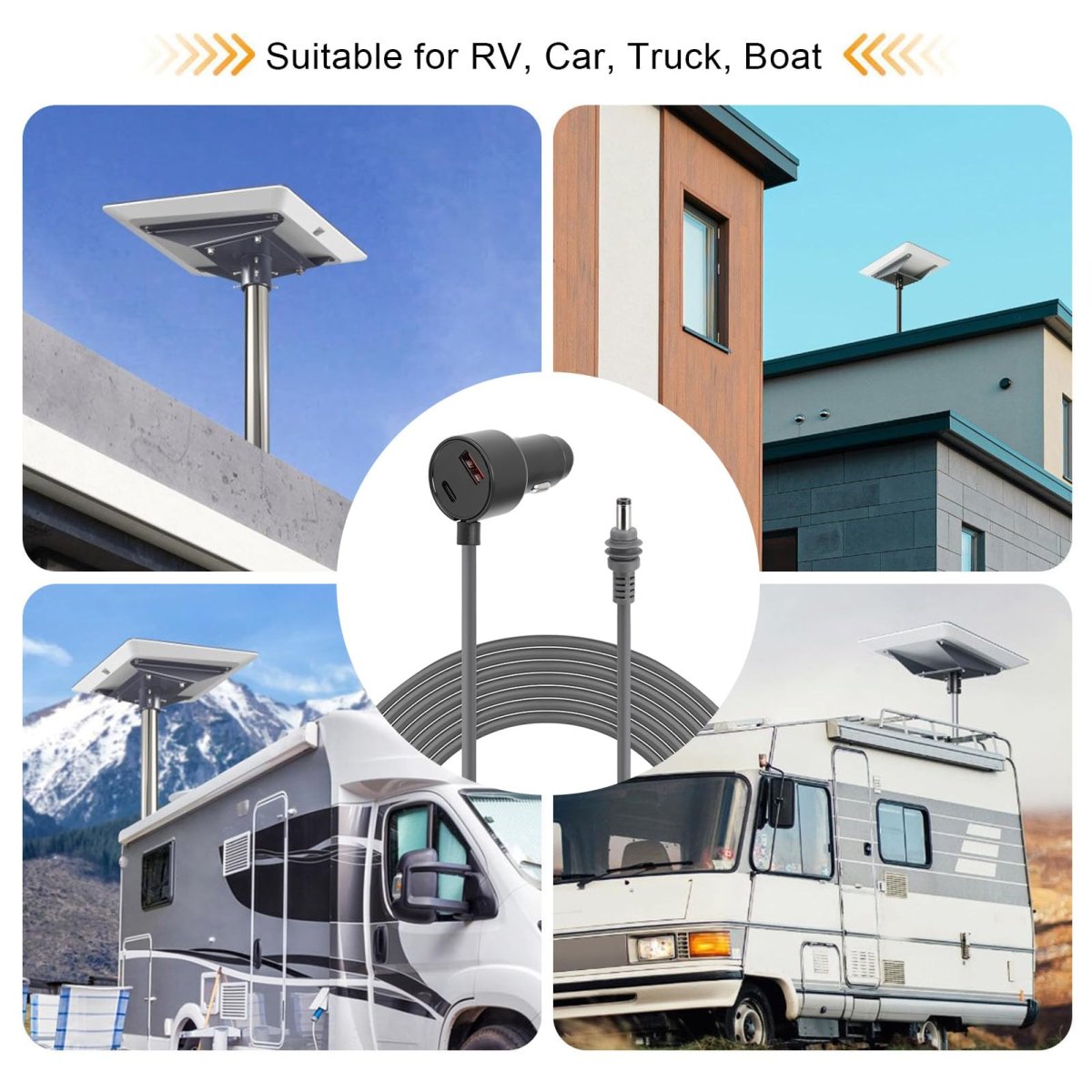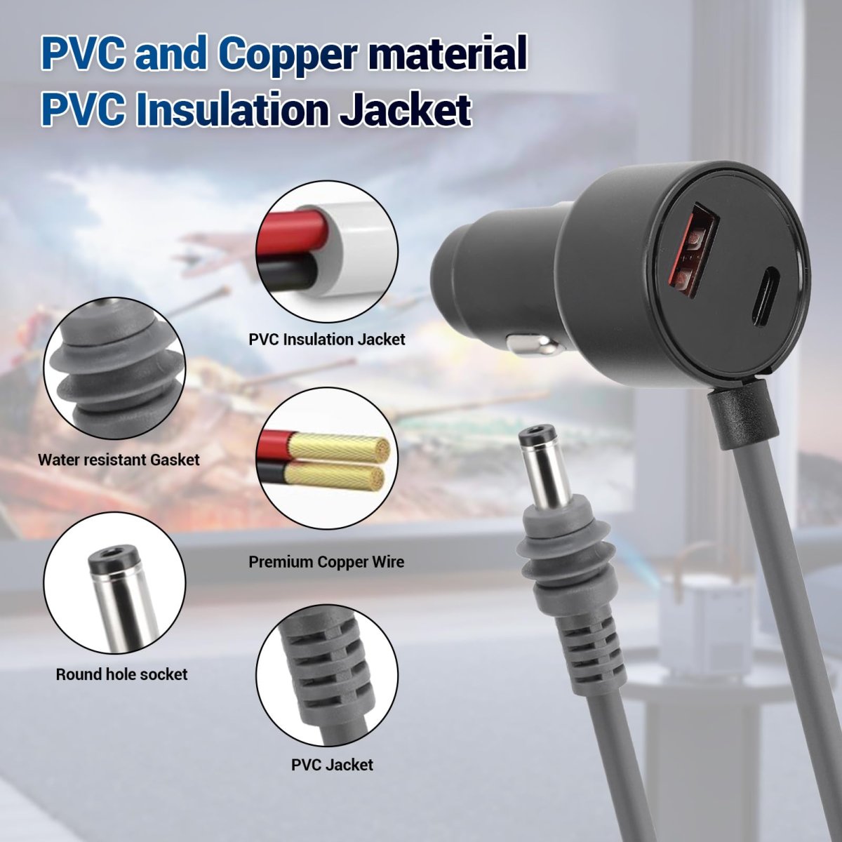[Highspeed Power Transmission] Built with premium 18awg wire this cigar lighter cable delivers stable and efficient power transmission. experience fast network speeds and reliable data transfer without signal delays. the highquality brass connectors and pvc material ensure durability and optimal performance.. [Durable & Weather ] Designed for both indoor and outdoor use this power cable features a highstrength pvc waterresistant shell and gasket to withstand harsh weather conditions. the robust construction ensures longlasting performance while the compact design saves space and enhances portability for outdoor adventures.. [Compatible & Convenient] Suitable for dc 12v to 48v vehicles including cars trucks buses and boats with cigar lighter sockets. its compact and spacesaving design improves convenience for outdoor use. remember to use it when the engine is running to prevent battery drainage.. [Premium Protection & Safety] The power cord is crafted from topgrade pvc material offering robust protection against damage and performance issues. its sturdy design safeguards your antenna and devices from powerrelated problems ensuring a reliable and uninterrupted power supply.. [Versatile Charging Solution] This dc car power cable supports multiple charging modes including dc usb and type c making it perfect for powering your dish antenna phones tablets and other devices. the intelligent digital display provides realtime voltage monitoring ensuring safe and efficient charging. enjoy seamless connectivity and stable power supply with this plugandplay cable..Other fine products