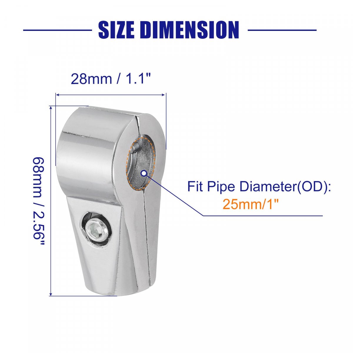 Fit Pipe Diameter: 25mm / 1"; Total Size: 65 x 28mm / 2.56" x 1.1"(L x W); Thickness: 2.5mm / 0.1"; Package Content: 4pcs x Drying Rack Pipe Fittings. Material: The display rack camp is made of Aluminum alloy material, electroplating surface finish, rust and corrosion resistance, durable, and very suitable for DIY furniture and other display products.. Design: Split structure, easy to disassemble and install, tight by hex screws, stable force is not easy to loosen.. Installation: Easy to use, you only need to connect the pipe joint with the metal pipe and tighten the hex screw with a wrench.. Application: The scaffold composite tube connector is mainly used for pipe connection fixed shelves, suitable for hangers, shelves, towel bars, clothing displays and so on. Widely used in balcony, bathroom, bedroom, kitchen..
