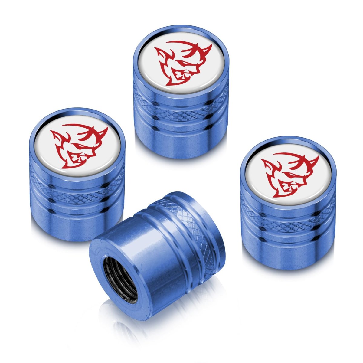 - Dodge Demon Red Logo In White On Blue Cylinder Style Aluminum Tire Valve Stem Caps Official Licensed