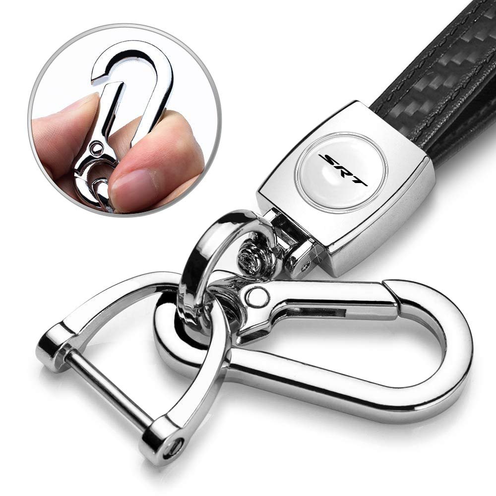- Dodge Jeep Srt Logo In White Real Carbon Fiber Loop-strap Chrome Hook Key Chain