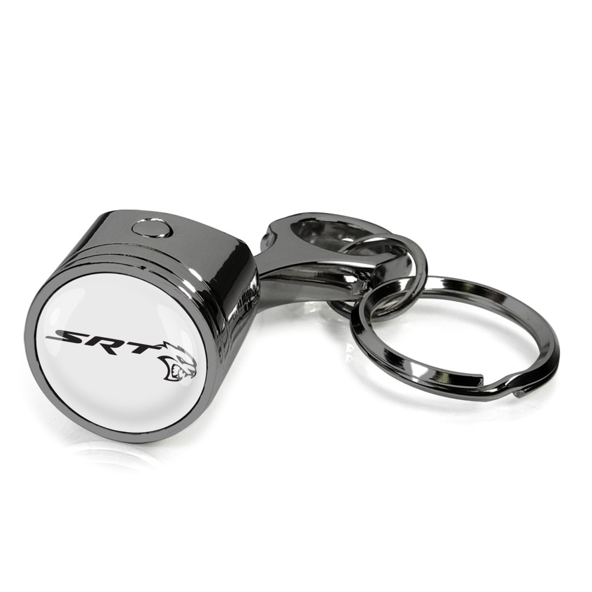 - Dodge Srt Hellcat Logo In White On Black Engine Piston And Rod Metal Key Chain