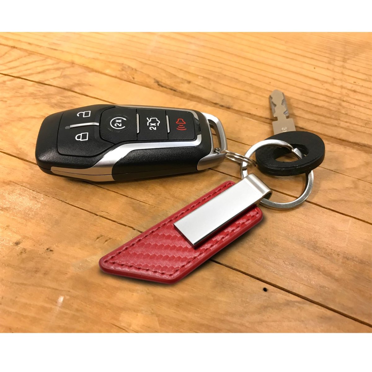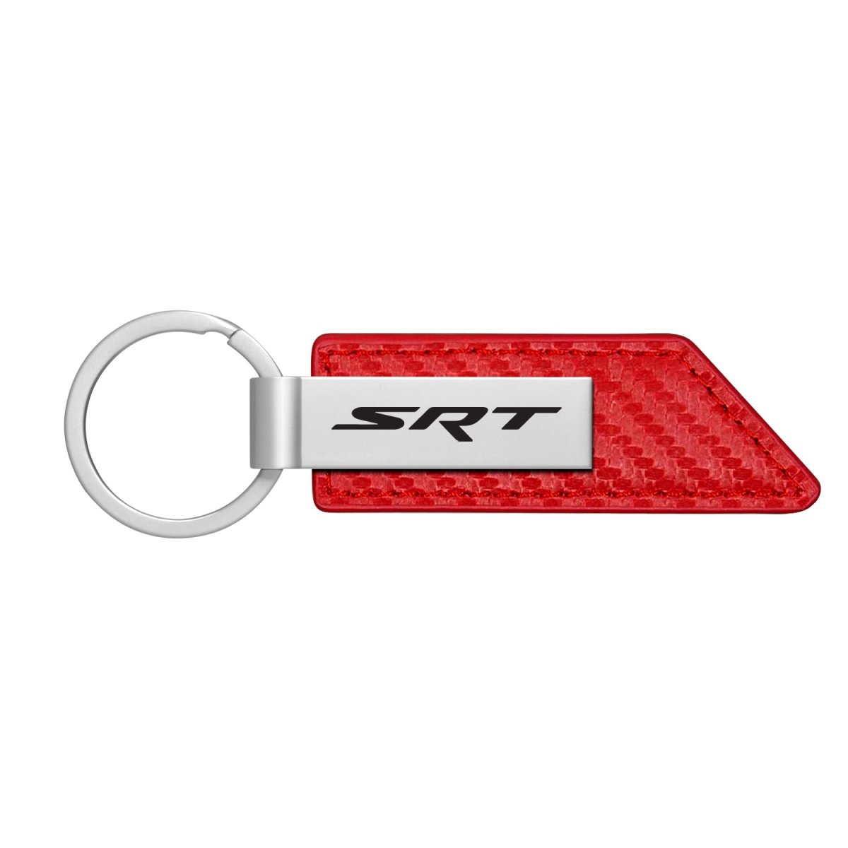 - Dodge Srt Red Pu Leather Carbon Fiber Texture Strap Silver Metal Bar Key Chain Official Licensed