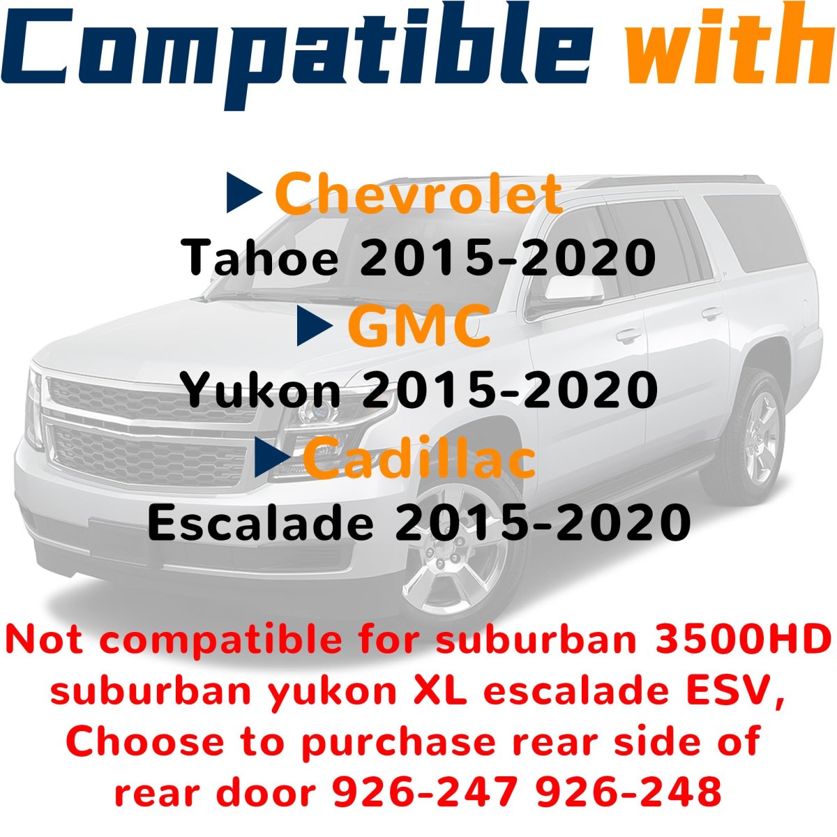 Replacement: 926-245 296-246. Contain: Left rear door rear decorative strip *1, Right rear door rear decorative strip *1. Compatible with: 15 16 17 18 19 20 Cadillac Escalade, Chevrolet Tahoe, GMC Yukon. 100% Perfect: Our windshield A-pillar panel trim is perfectly compatible with the radian of the original car.Other fine products