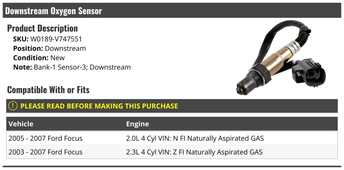 - Downstream Oxygen Sensor For 2003-2007 Ford Focus