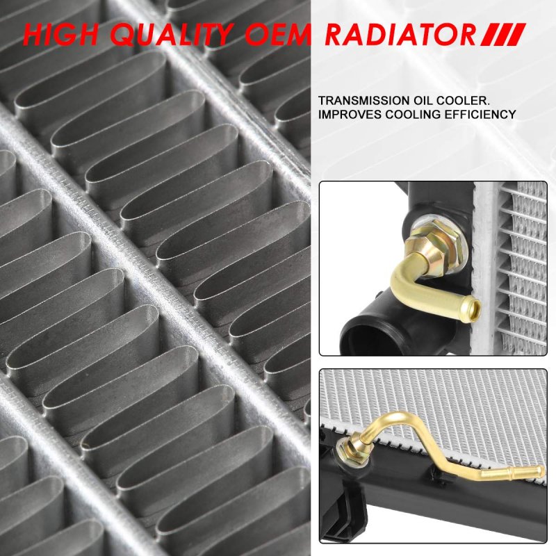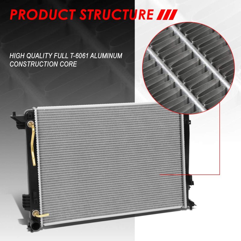 This radiator is compatible with Tucson 2010-2015, Sportage 2011-2016, fits 2.0L 2.4L hybrid, fits automatic transmission models.. Come with [1] radiator, improve engine cooling efficiency.. It is constructed of full T-6061 aluminum construction core, heat and wear resistant PVC material to ensure a long lasting performance life.. Lightweight direct bolt-on OE fitment or replacement for the factory unit, perfect fitting and running. No need drilling or modification, easily for the installation.. Rows: 1 Core Dimensions: 25-3/16" W X 18-11/16" H X 5/8" D Inlet / Outlet: 1-3/8" Transmission Oil Cooler(TOC): Yes Engine Oil Cooler(EOC): No OEM Part Number: 253102S500 253102S550 253102S650 Parkslink Number: CU13150.Other fine products