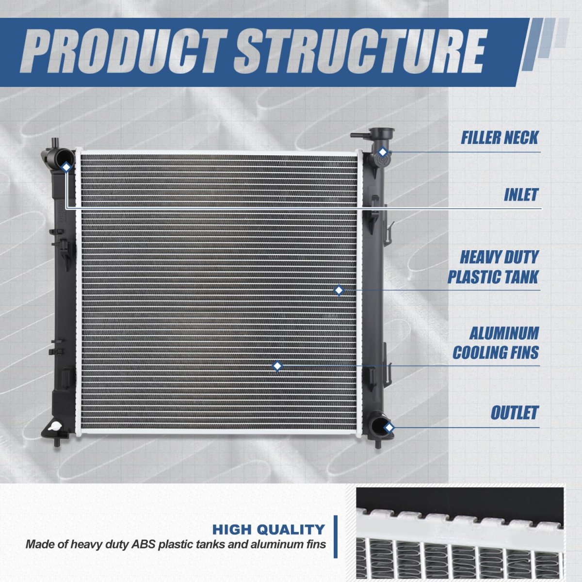 Vehicle Compatibility - radiator compatible with Optima 2016-2019, fits 1.6L turbo models.. Brilliant Performance - Come with [1] high performance lightweight design cooler radiator with aluminum cooling fins, can make the replacement and improve engine cooling efficiency, making stronger and higher capacity for coolant than stock.. Extraordinary Quality - It is constructed of aluminum construction core and heavy duty ABS plastic to ensure an extremely long lasting performance life.. Simple Installation - Direct bolt-on OE fitment or replacement for factory unit, fast and easy installation without any drilling or modification.. Product Specifics - Rows: 1 Core Dimensions: 18-7/8" W x 18-5/16" H x 1" D Inlet / Outlet: 1-3/8" Transmission Oil Cooler(TOC): No Engine Oil Cooler(EOC): No Flow Type: Cross Flow Weight: 8.31 LBS OEM Part Number: 25310D5200 Partslink Number: 13605.Other fine products