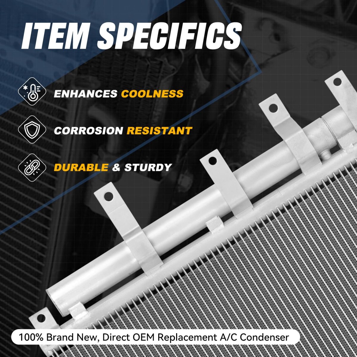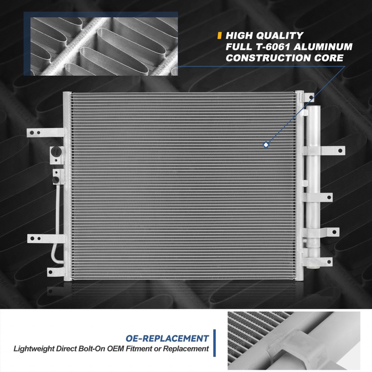 Vehicle Compatibility - A/C Condenser Compatible with Electric 2019-2023, Niro EV 2019-2022. Brilliant Performance - Come with [1] lightweight design A/C condenser, can make the replacement for old and damage one, to improve engine cooling efficiency.. OEM Characteristic - It is made specifically for your vehicle with exact factory style appearance and function which will make you enjoy the convenience.. Product Specifics - Core Dimension 20" x 16" x 0.6" OEM Part Number: 97606K4010 Partslink Number: CDC88108.