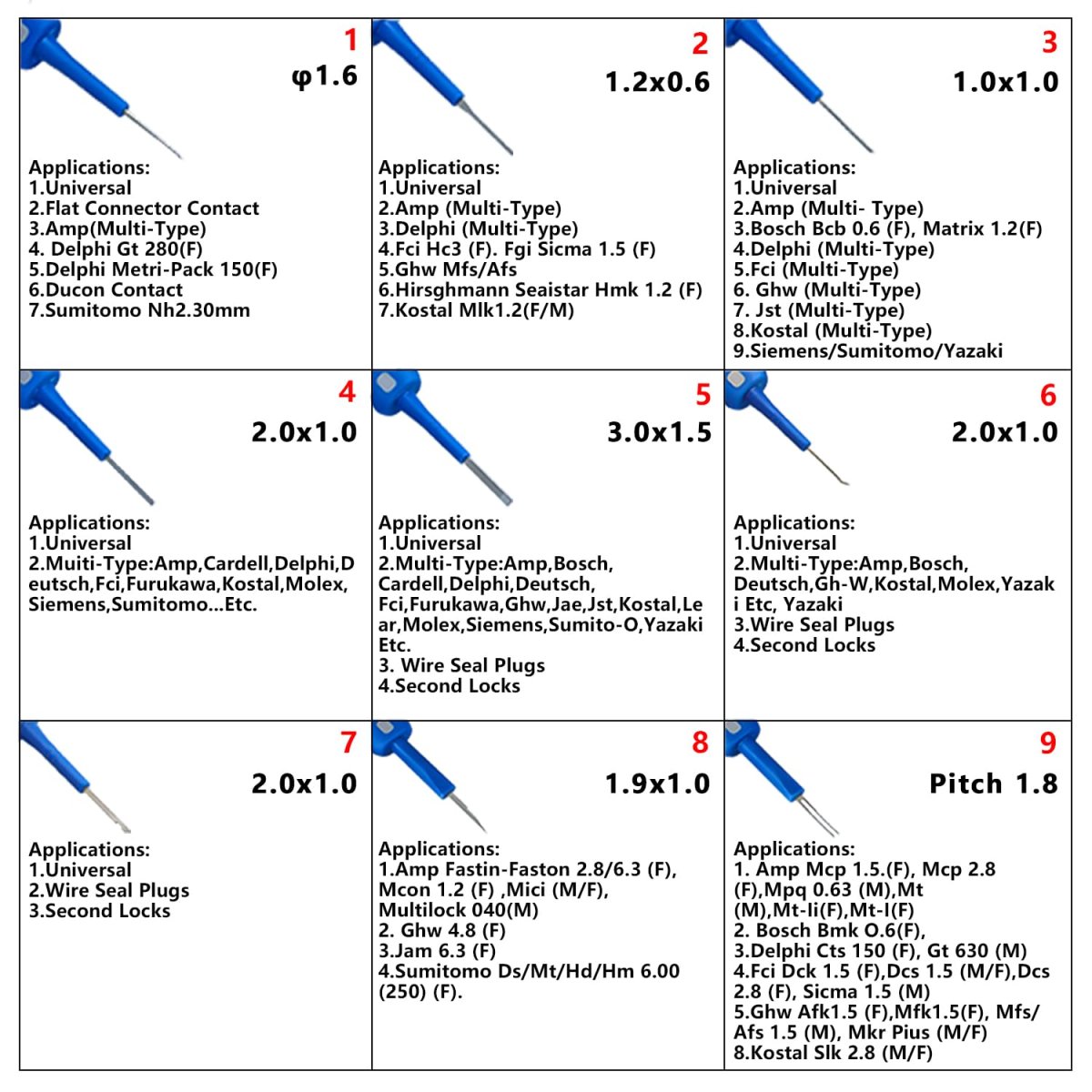 Nondestructive Removal Terminals: The tool accurately matches all kinds of slots, when encountering difficult to remove the plug, choose the right tool head to align the slot gently a top, hear the click unlocking sound can be a complete pull out the terminals, will not pry off the plastic clips, scratching the metal contacts, damage to the wires or connector shell, compared with the use of brute force, it can save time and frustration. Easy To Use: Thick rubberized handle with non-slip texture for a smooth grip like a screwdriver, high-quality tips are finely polished to fit tightly into different shaped slots, and will not bend when inserted into deep slots in the steering wheel buttons or center screen. The lever pivot point is designed to move forward, when encountering particularly tight plugs or invisible snaps, you only need to rotate your wrist with moderate force or gently pry to easily unlock them. Wide Application: The tool has various shapes and sizes of pins and probes, it can handle a wide range of different types of connectors and terminals. compatible with automotive repair: suitable for Ford, Toyota, BMW, Harley motorcycle / scooter and most other models, as well as cars / trucks ECU interfaces, taillight harnesses and other precision parts; home appliance modification: 1.5mm ultra-fine probe disassembly of air conditioning motherboards, U-type fork non-destructively open the interf. Package Includes: For tubular, flat, square, notched flat, and U-shaped notched flat, pin, pick and other types, Almost all connector types covered tool. Materials: Made of high-quality steel head, high hardness, no deformation, durable, matching portable tool box divided into upper and lower two layers, tools are in the independent card position, lift the lid to find the tools you need to effectively prevent the loss of forgetting, snap locking is not afraid of the bumps scattered, repairing the car can also be used as a temporary tool table, put the trunk tool slot is very suitable!.Other fine products